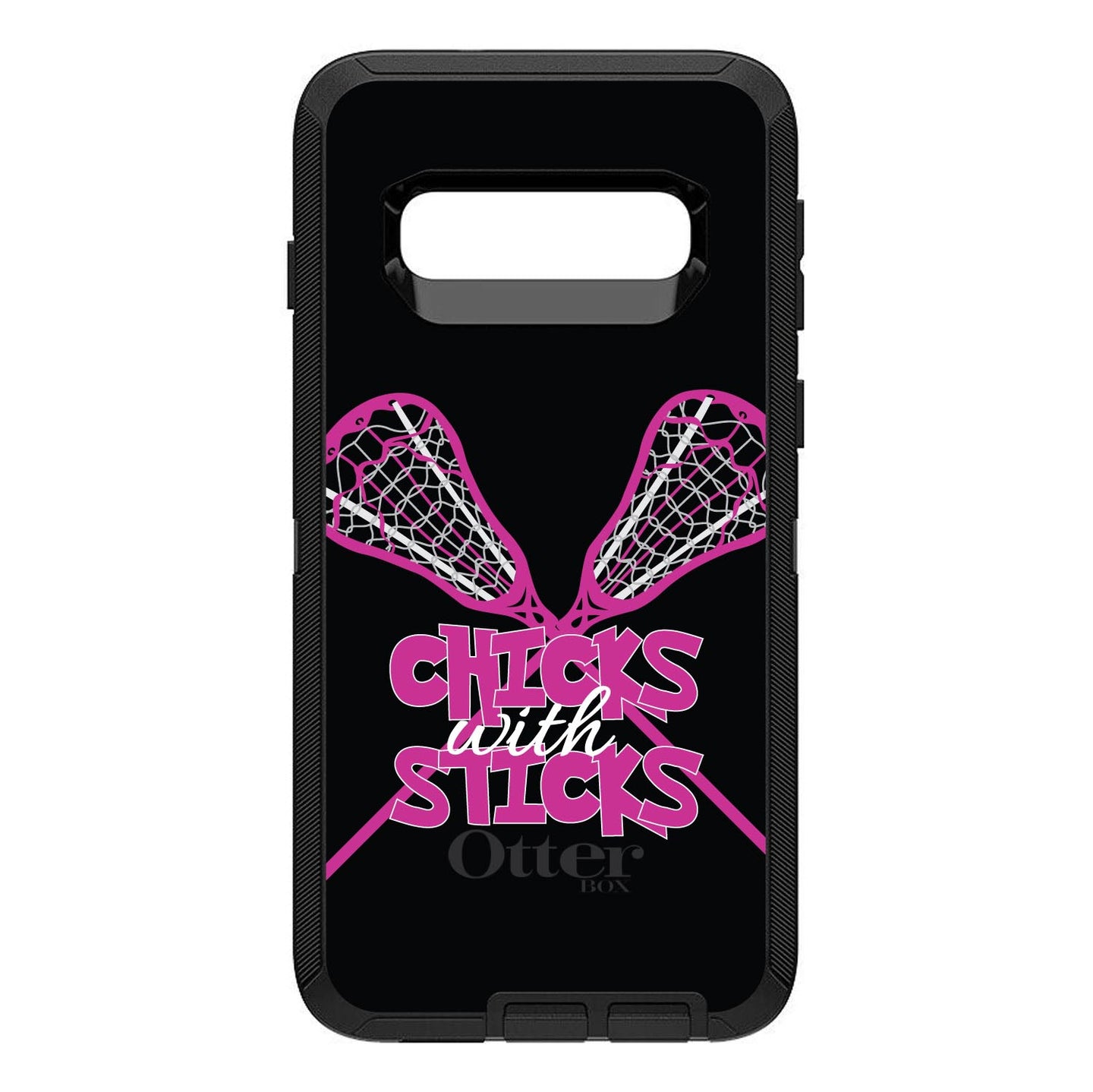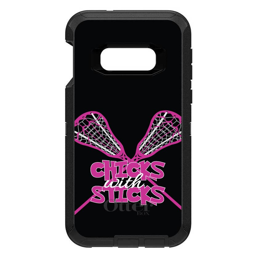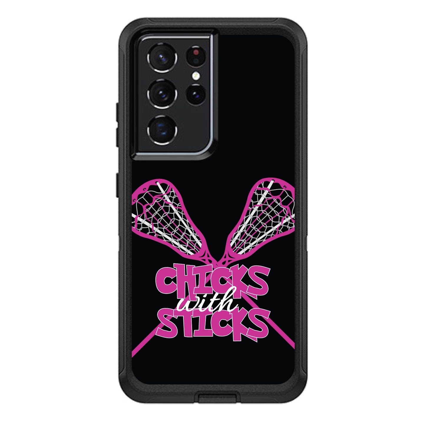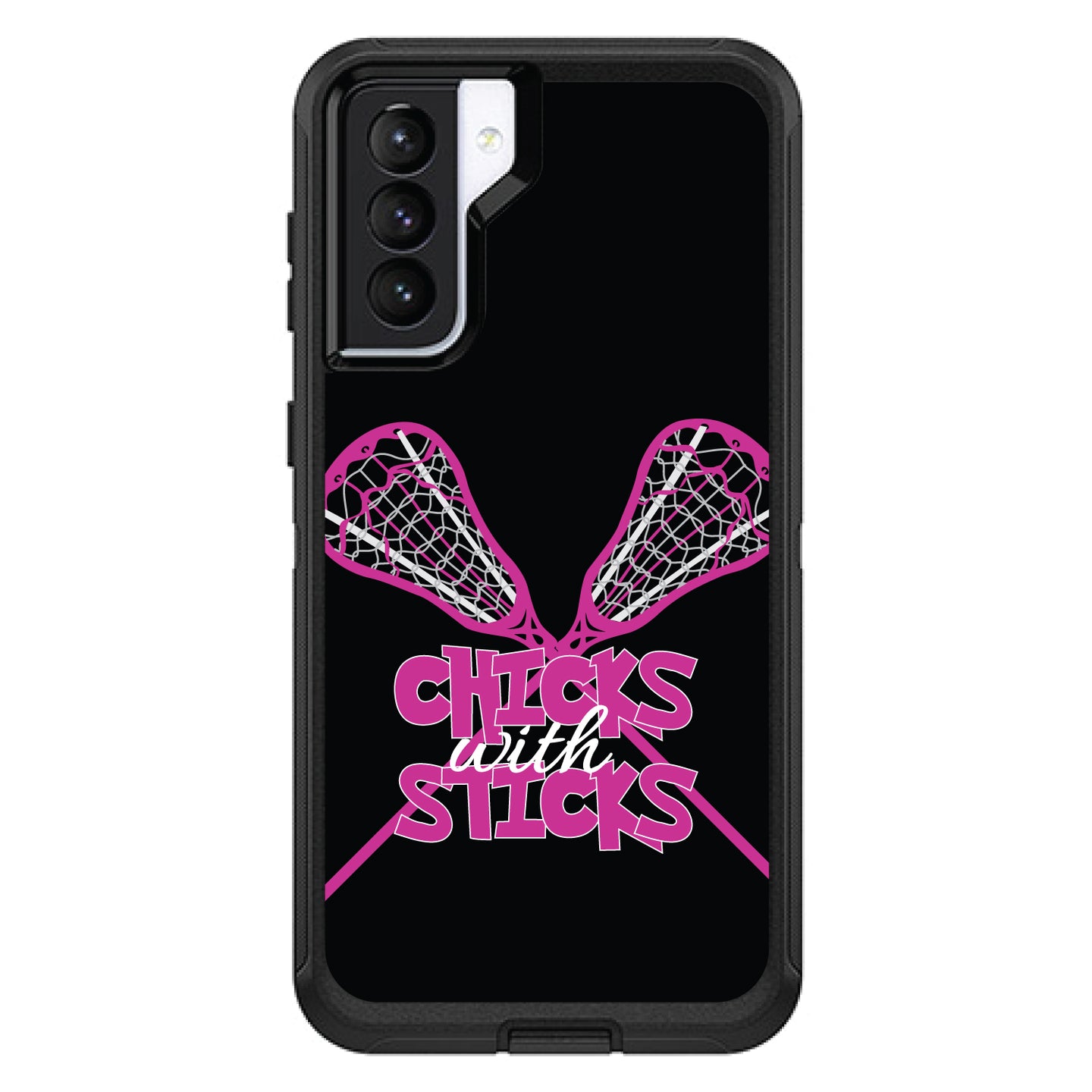 DistinctInk™ OtterBox Defender Series Case for Apple iPhone / Samsung Galaxy / Google Pixel - Hot Pink Lacrosse - Chicks with Sticks