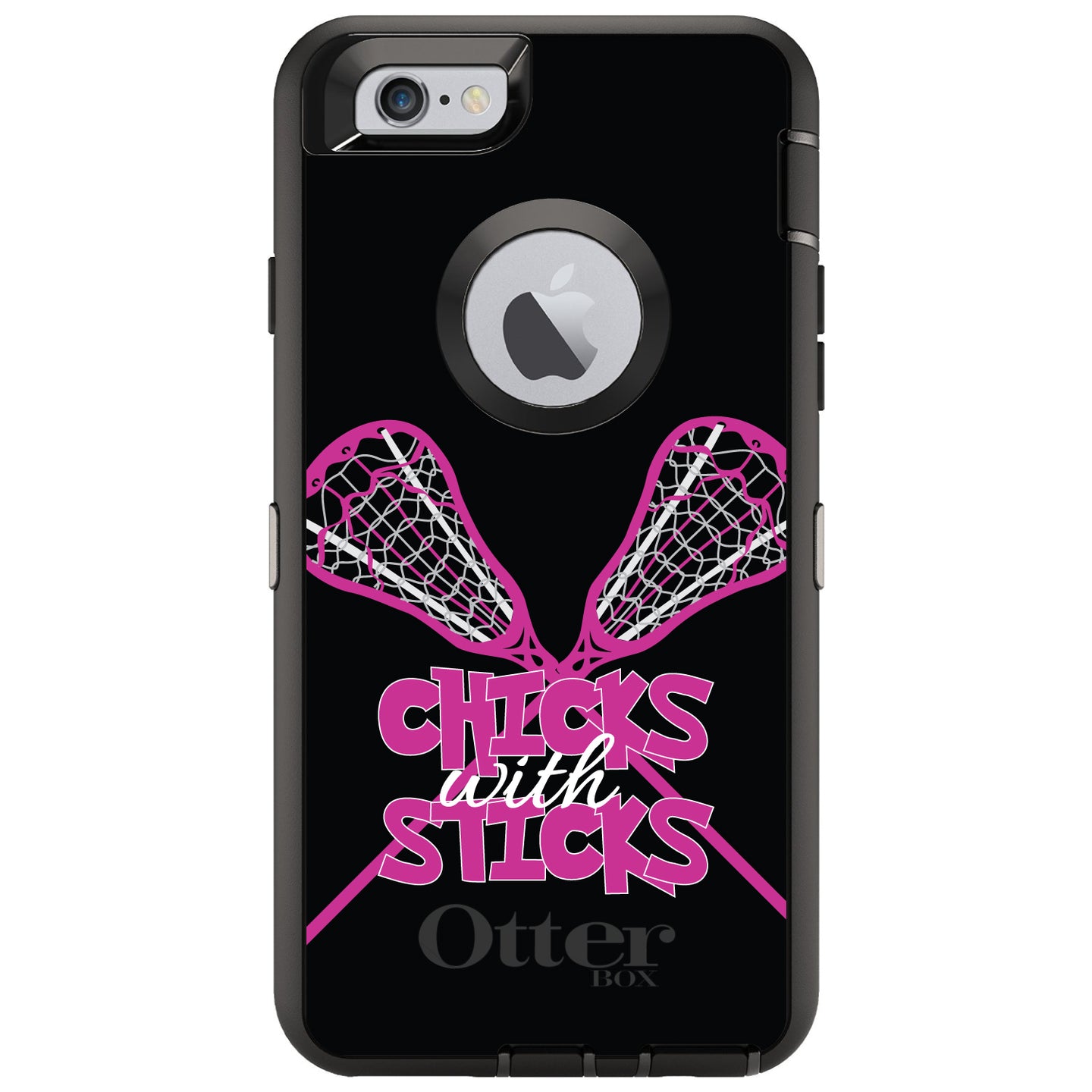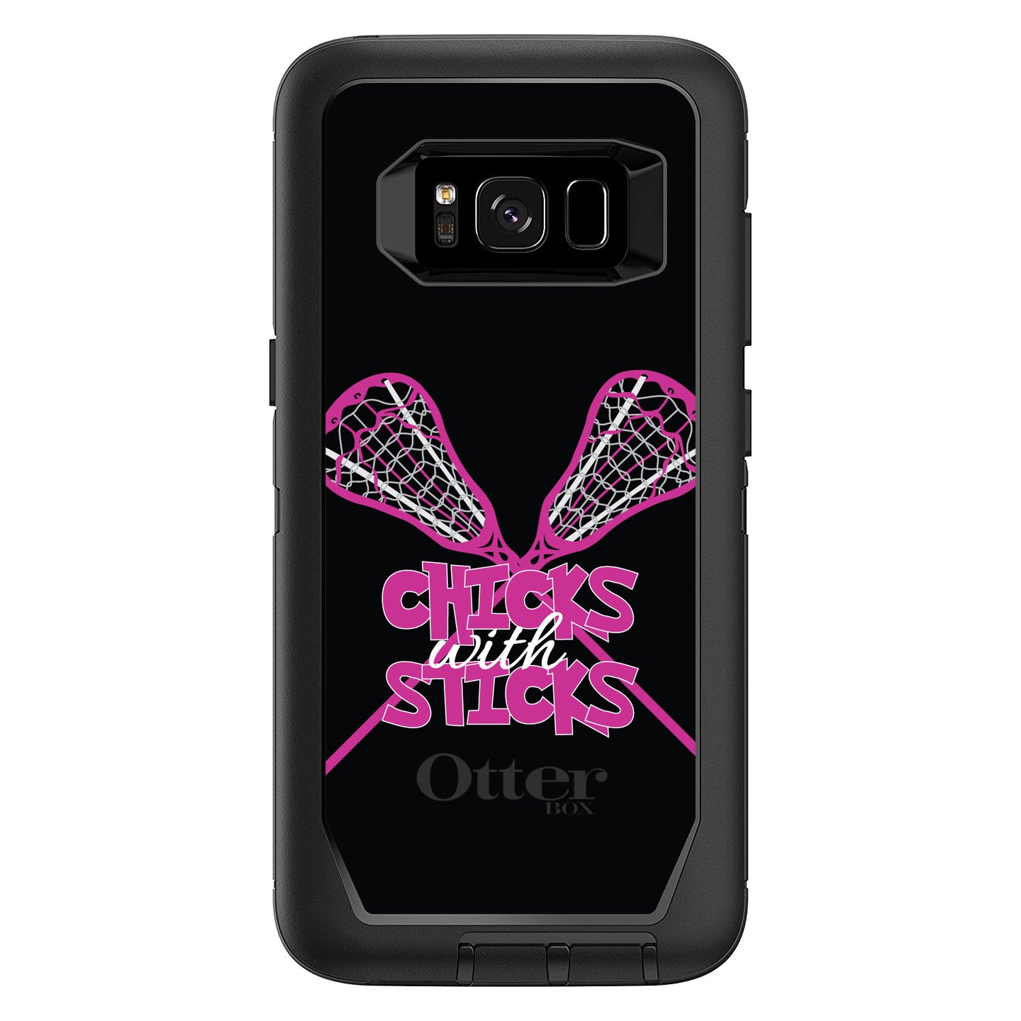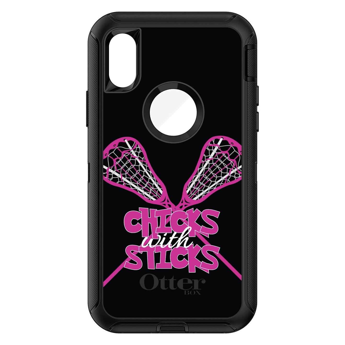 DistinctInk™ OtterBox Defender Series Case for Apple iPhone / Samsung Galaxy / Google Pixel - Hot Pink Lacrosse - Chicks with Sticks