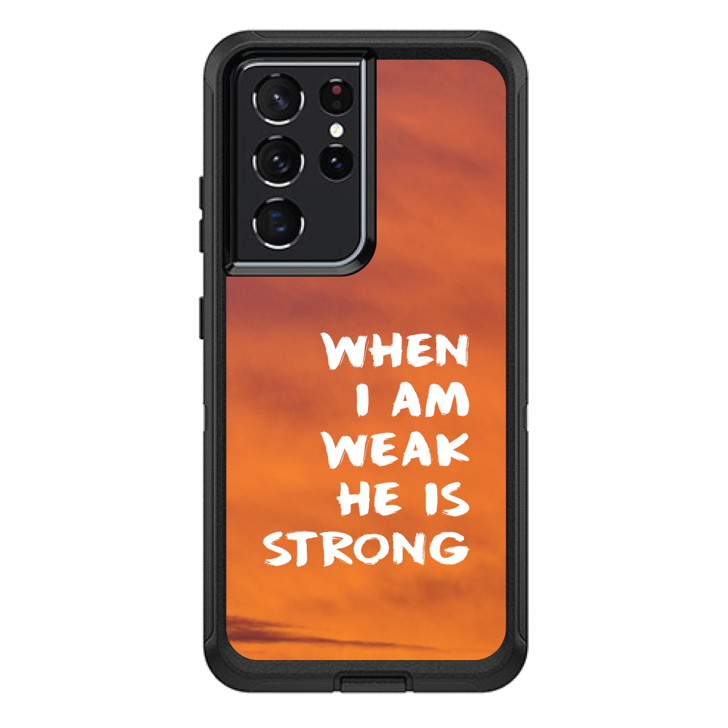 DistinctInk™ OtterBox Defender Series Case for Apple iPhone / Samsung Galaxy / Google Pixel - When I Am Weak, He Is Strong