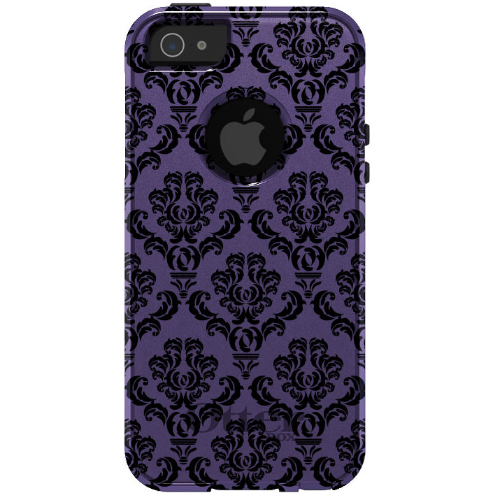 DistinctInk OtterBox Commuter Series Case for Apple iPhone or Samsung Galaxy - Purple Black Damask Floral