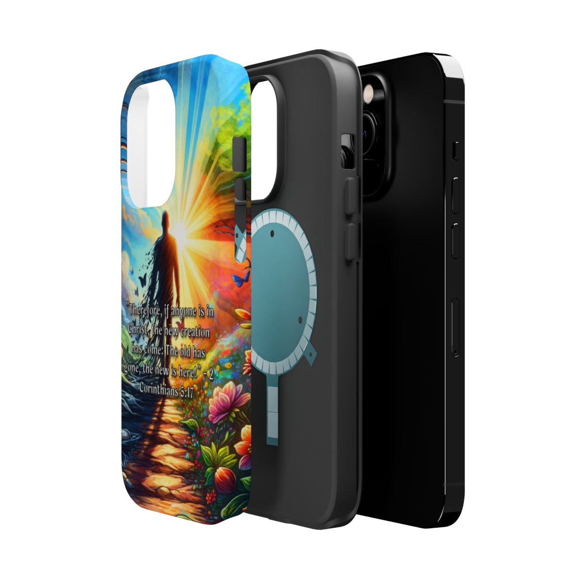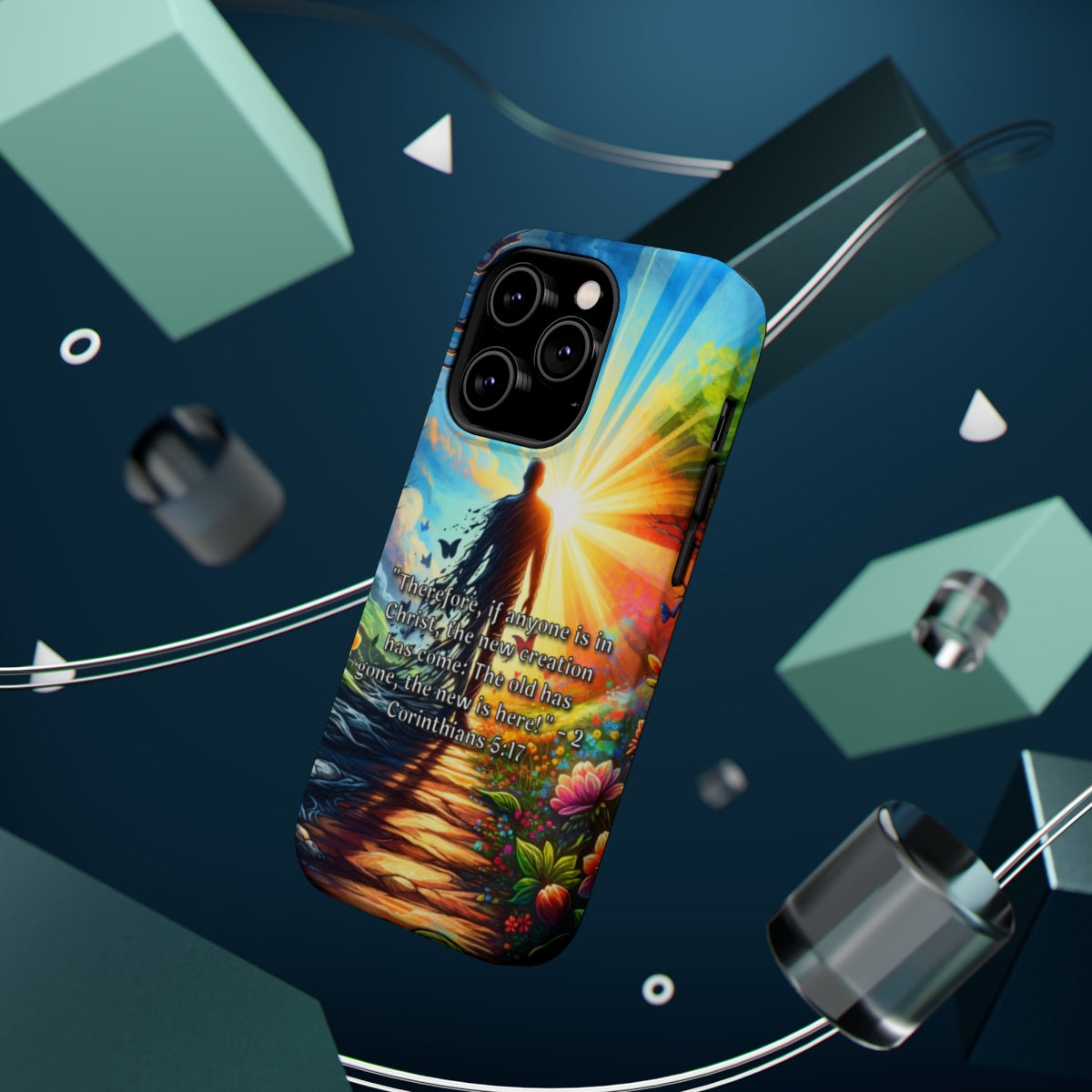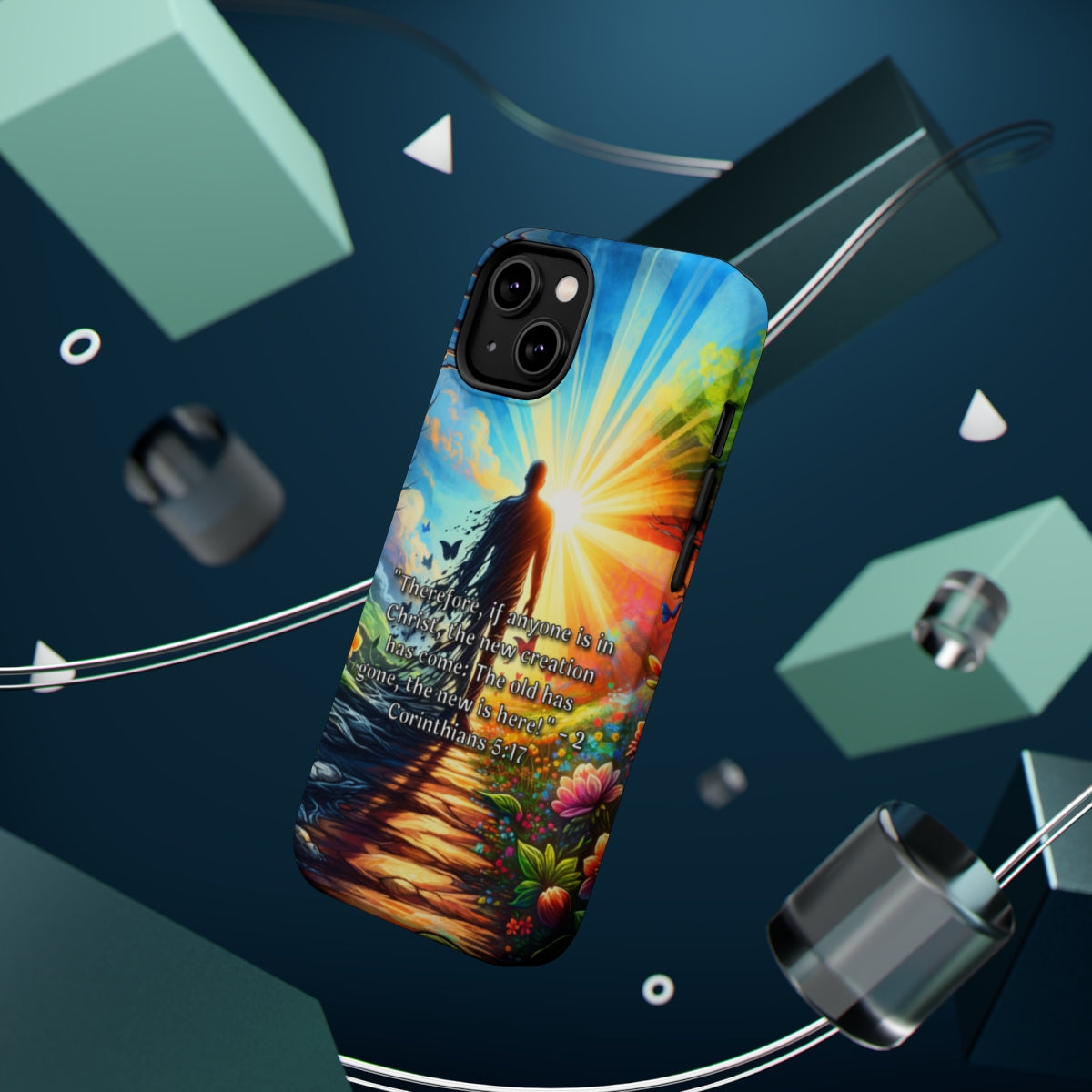 DistinctInk Tough Case for Apple iPhone, Compatible with MagSafe Charging - 2 Corinthians 5:17 - The Old Gone, the New Here