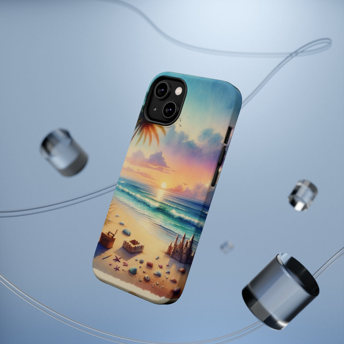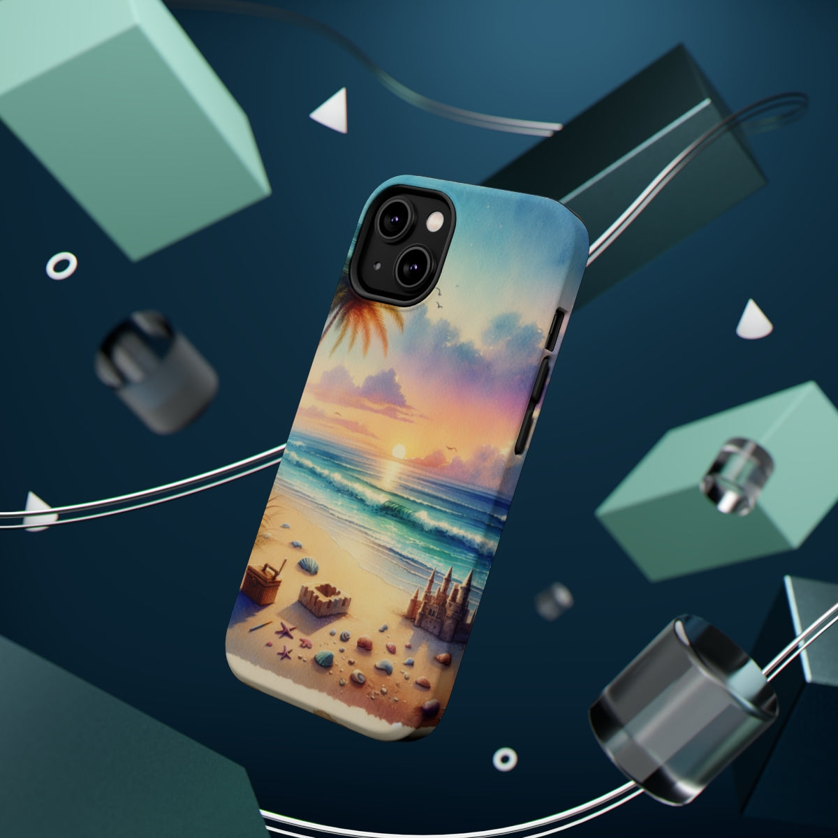DistinctInk Tough Case for Apple iPhone, Compatible with MagSafe Charging - "A Serene Sunset on an Empty Beach"