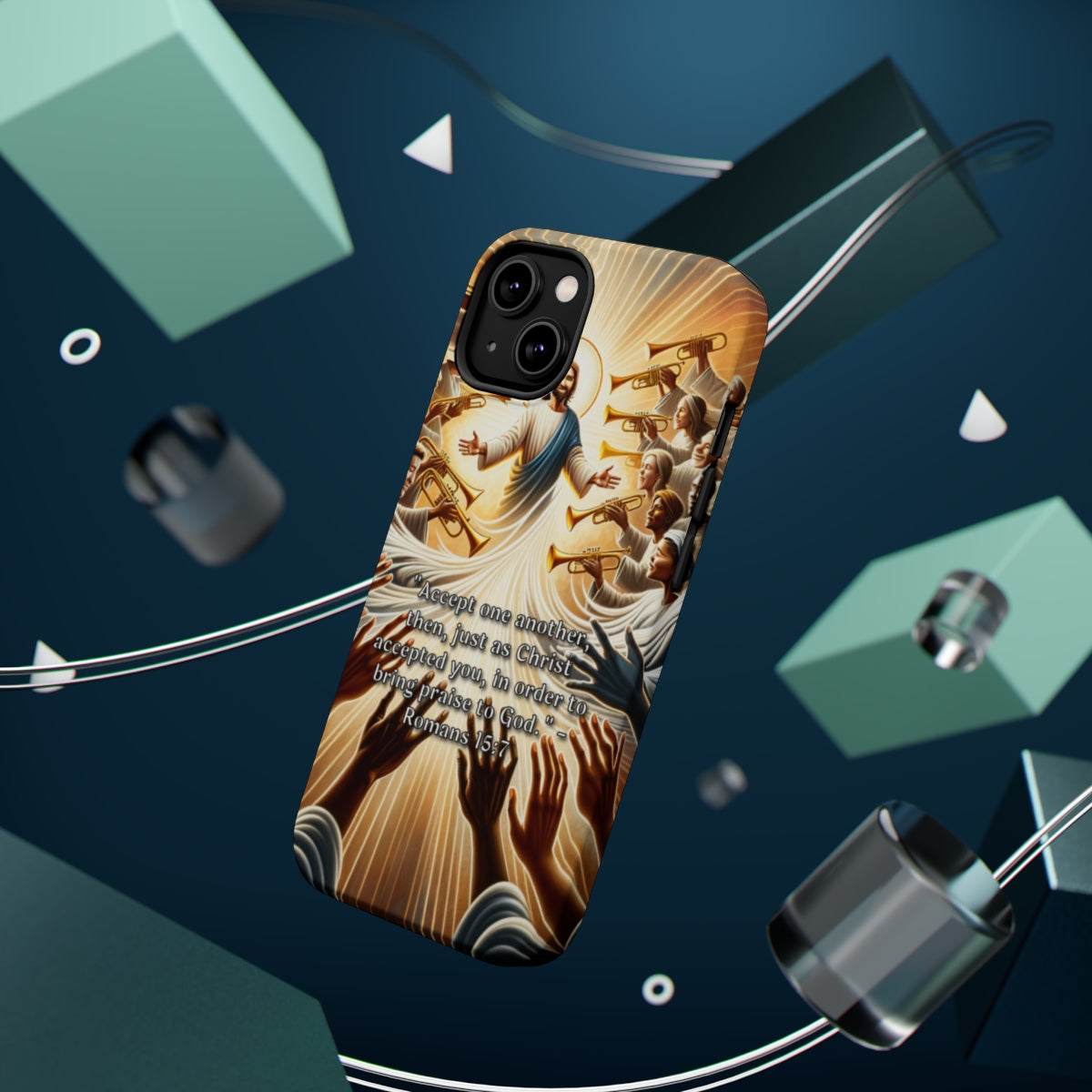 DistinctInk Tough Case for Apple iPhone, Compatible with MagSafe Charging - "Accepting One Another: A Reflection on Romans 15:7"