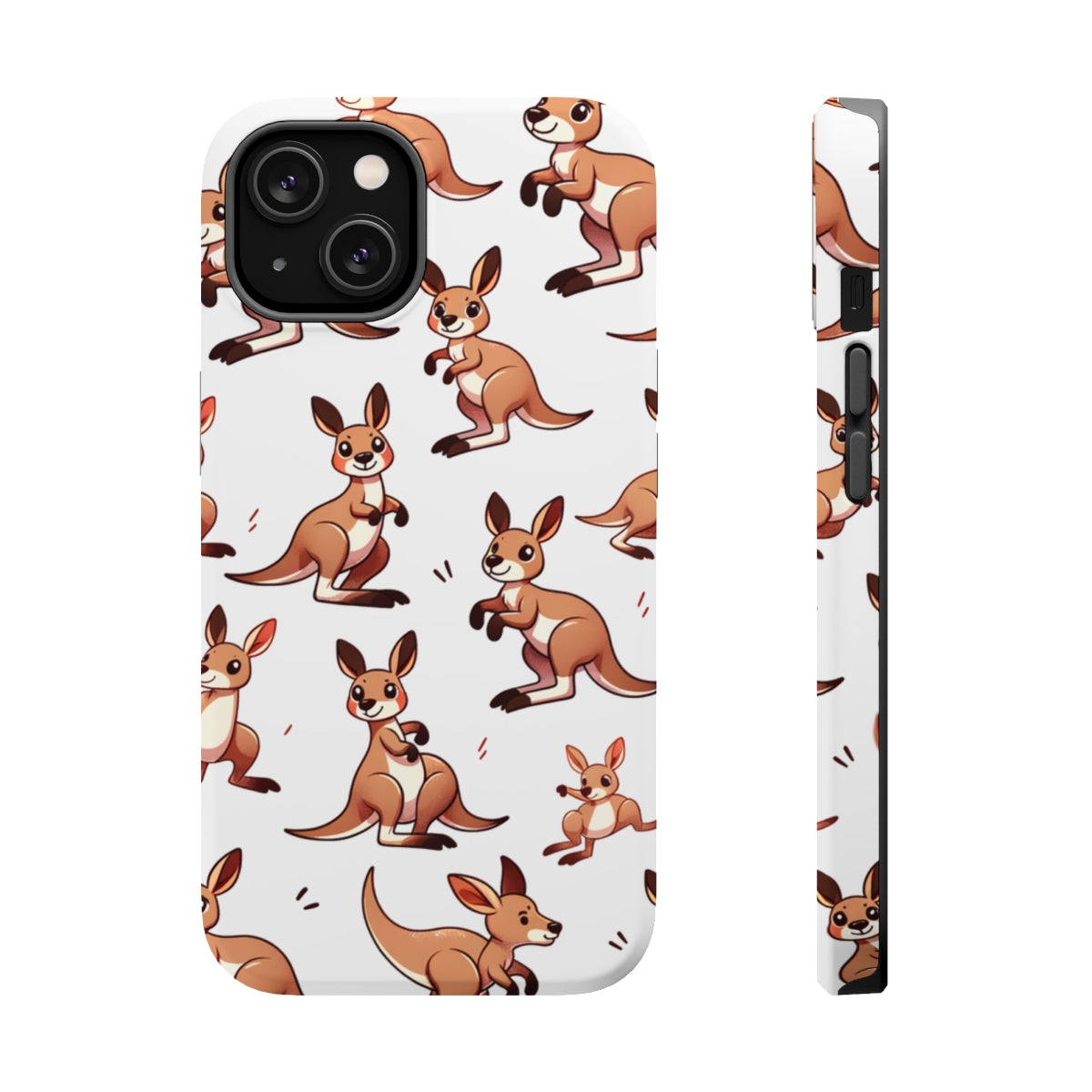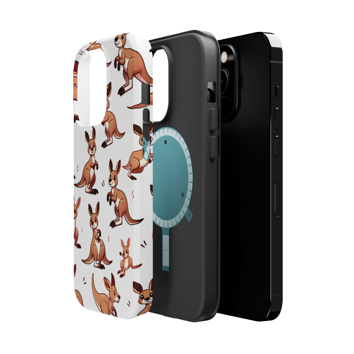 DistinctInk Tough Case for Apple iPhone, Compatible with MagSafe Charging - "Adorable Cartoon Kangaroos in Playful Poses"