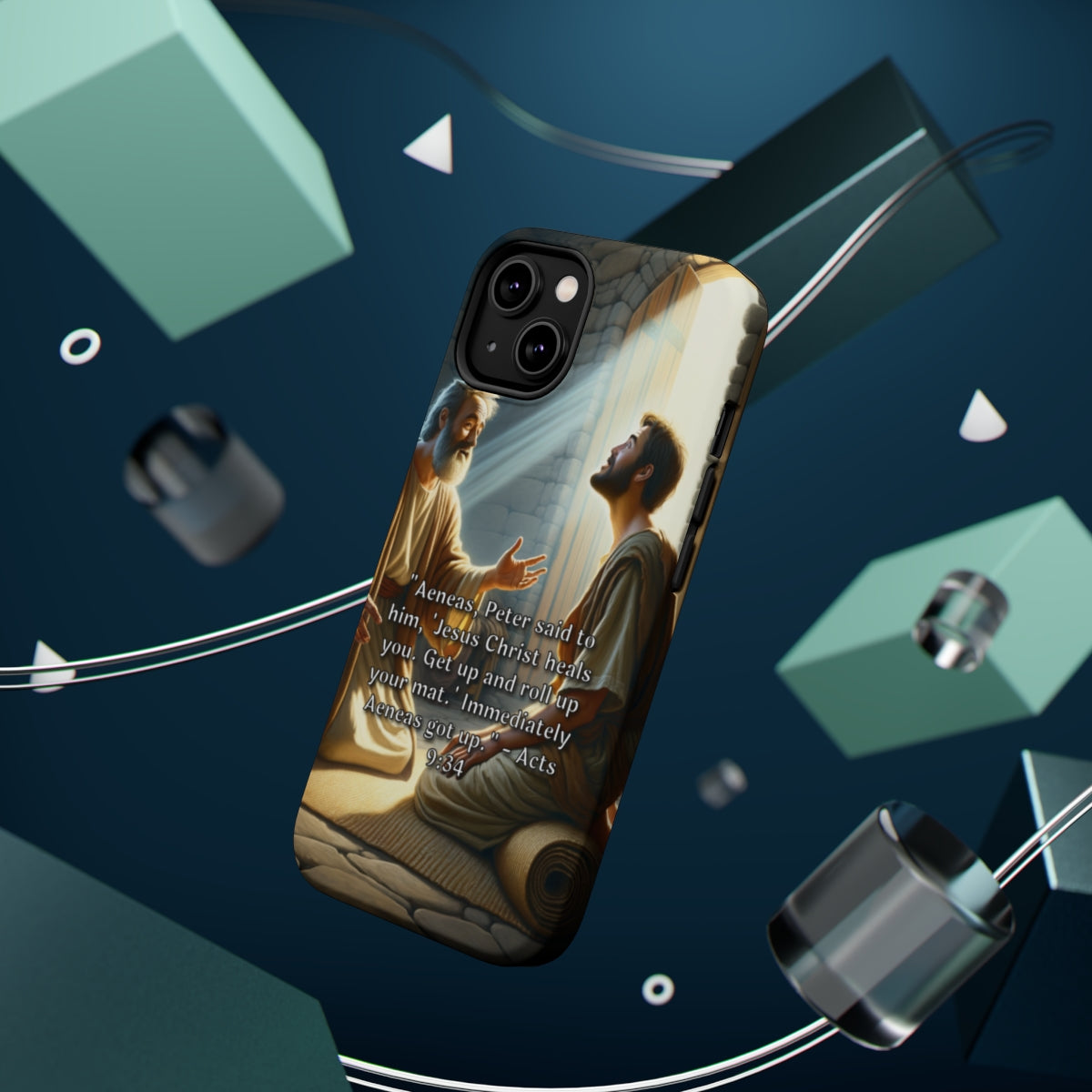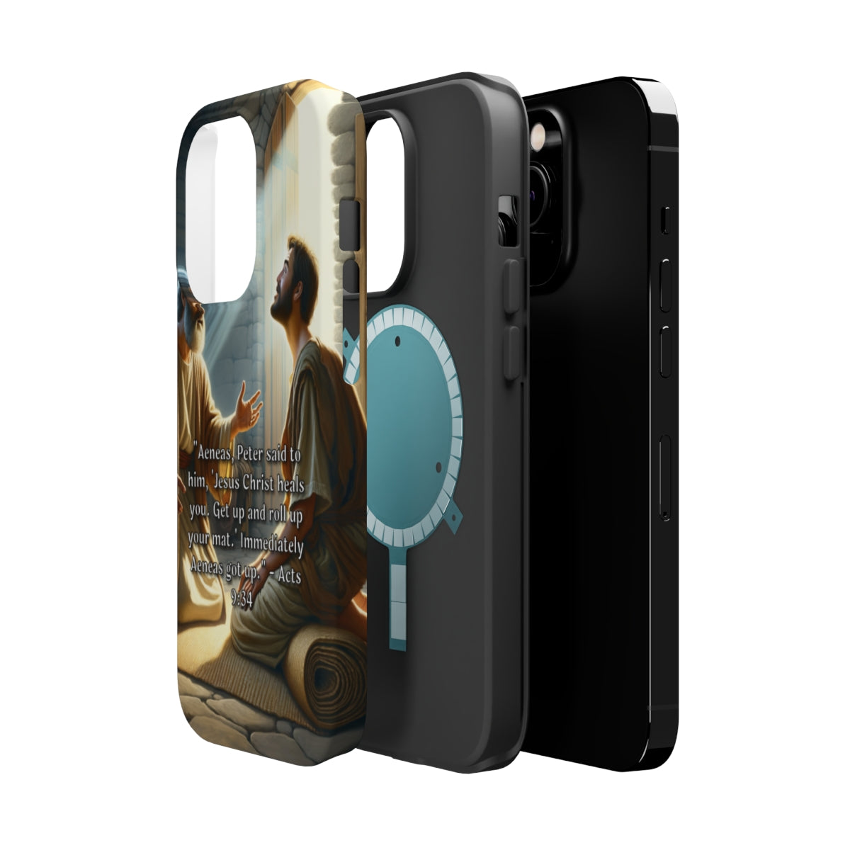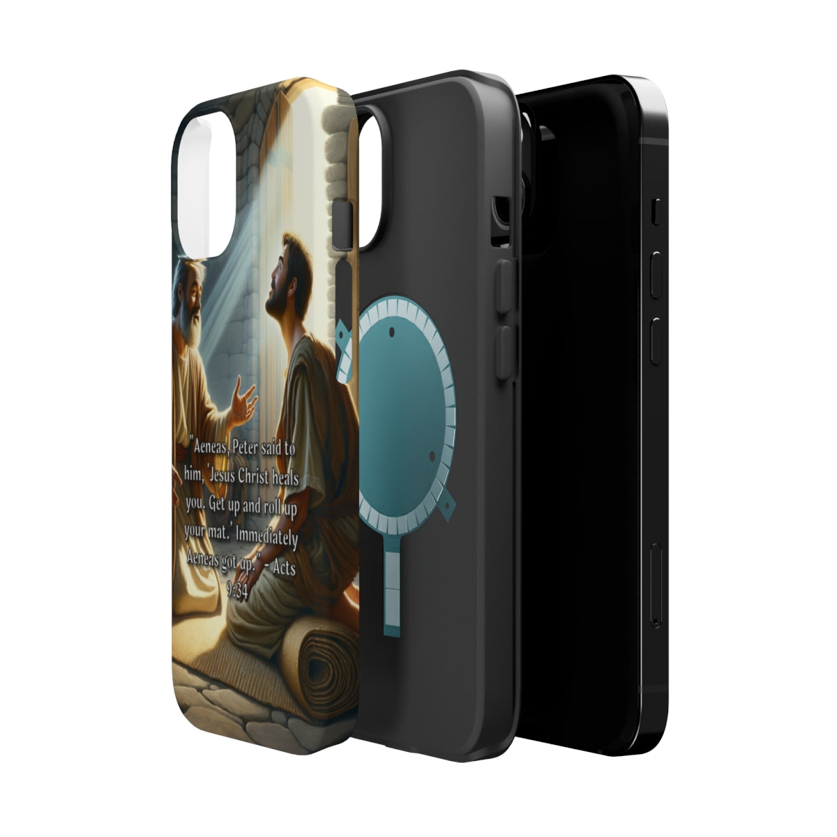 DistinctInk Tough Case for Apple iPhone, Compatible with MagSafe Charging - "Aeneas Rises: Acts 9:34 - A Miracle of Healing"