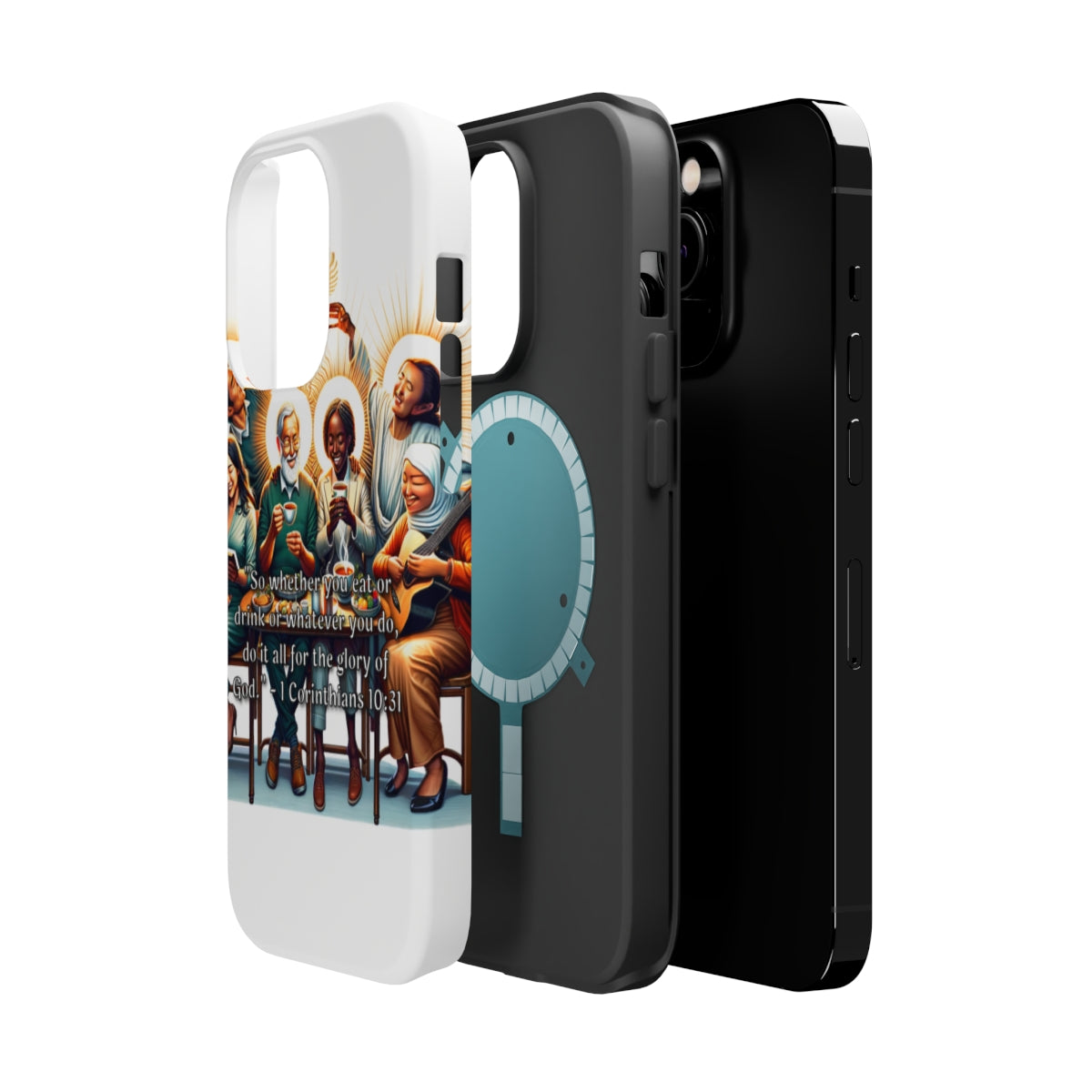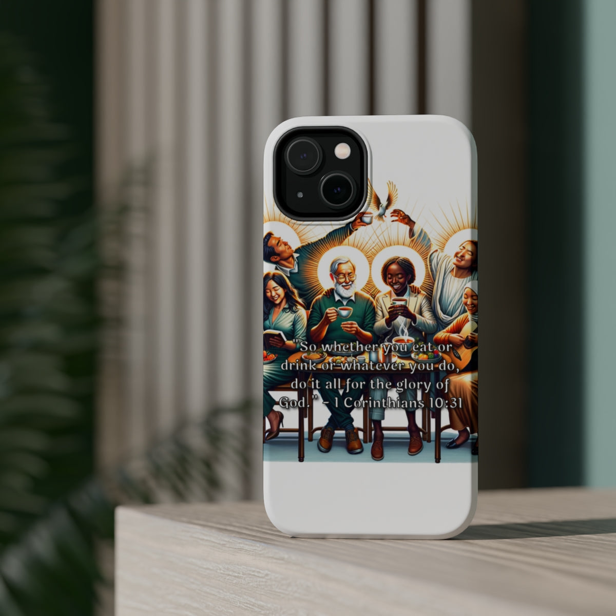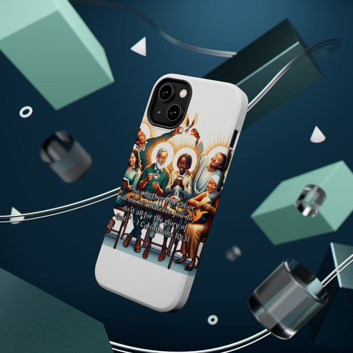 DistinctInk Tough Case for Apple iPhone, Compatible with MagSafe Charging - "All for the Glory of God: 1 Corinthians 10:31"