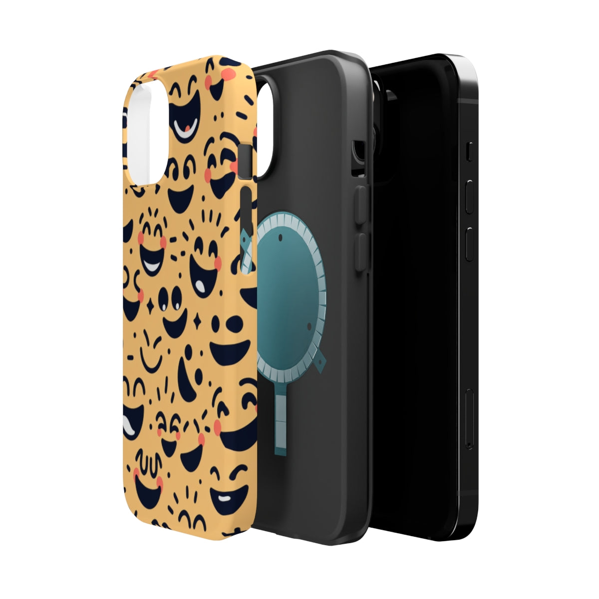 DistinctInk Tough Case for Apple iPhone, Compatible with MagSafe Charging - "Beaming Smiles: A Joyful Cartoon Pattern"