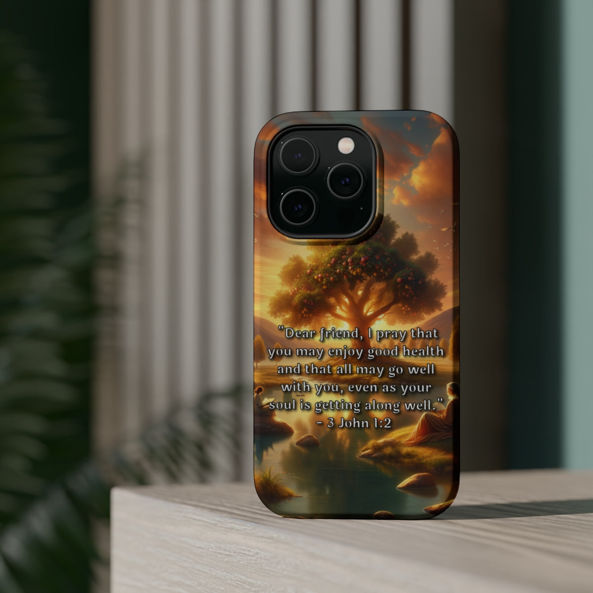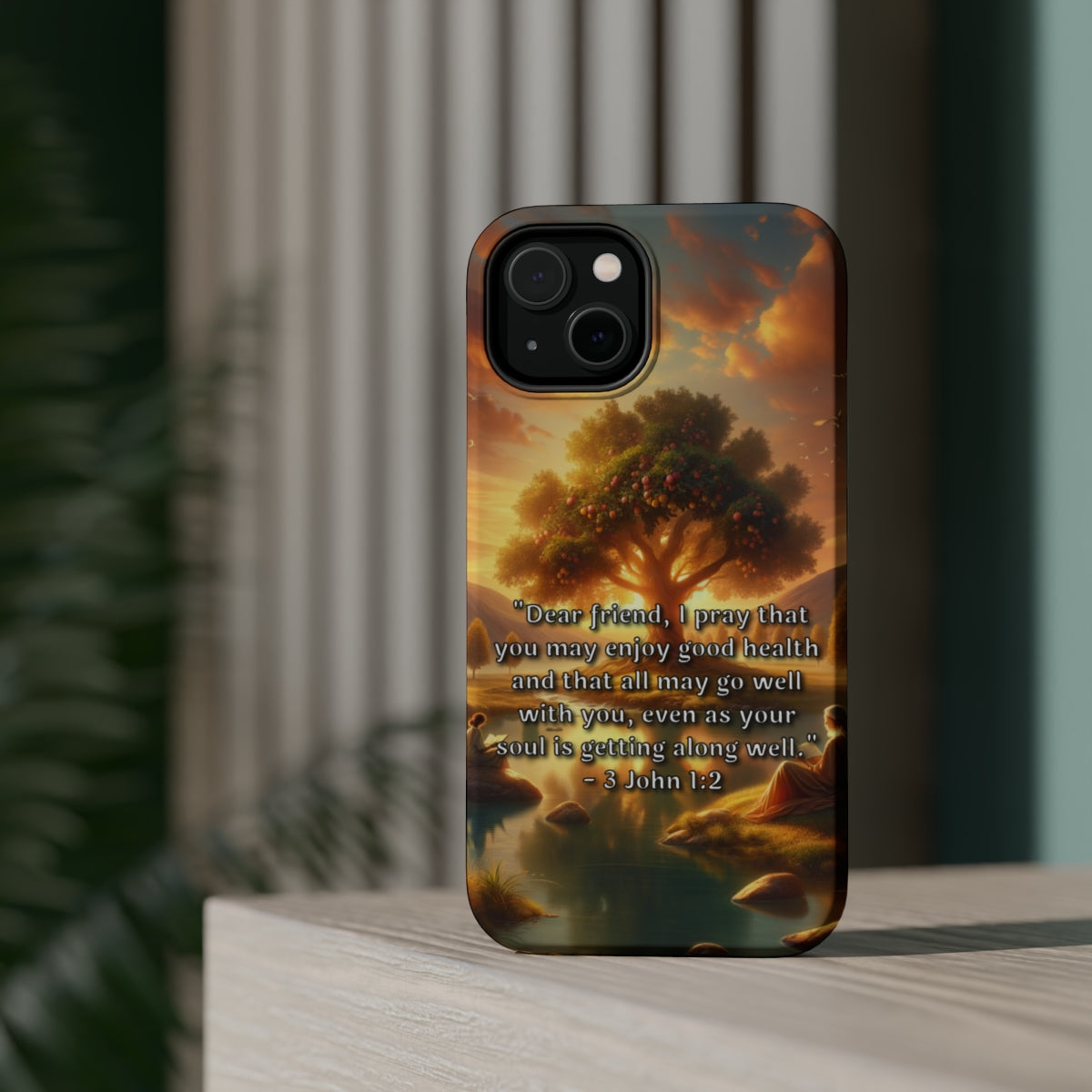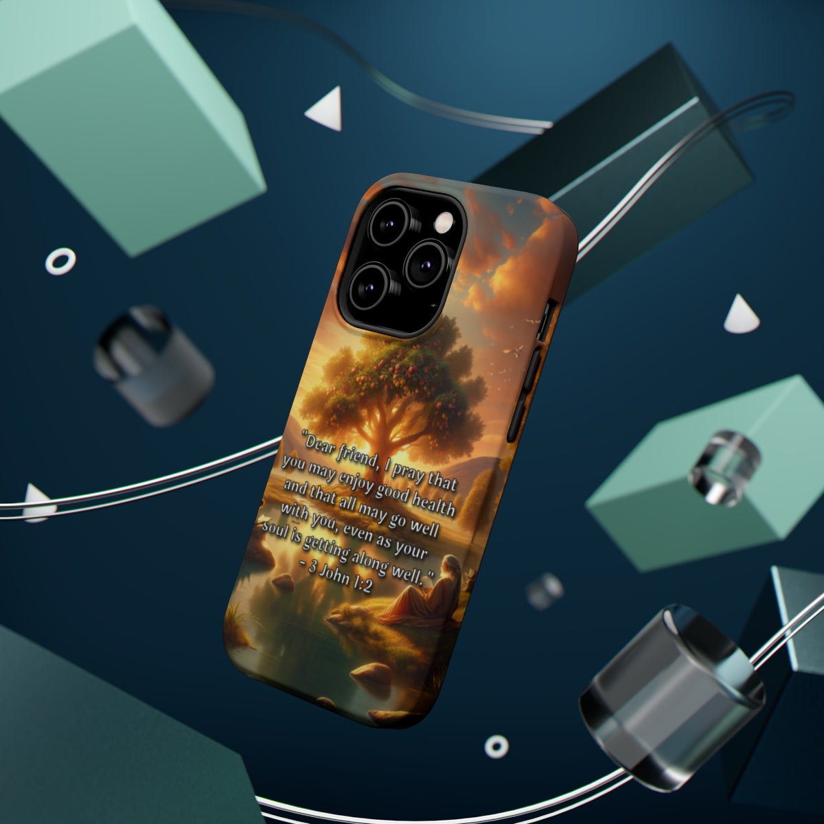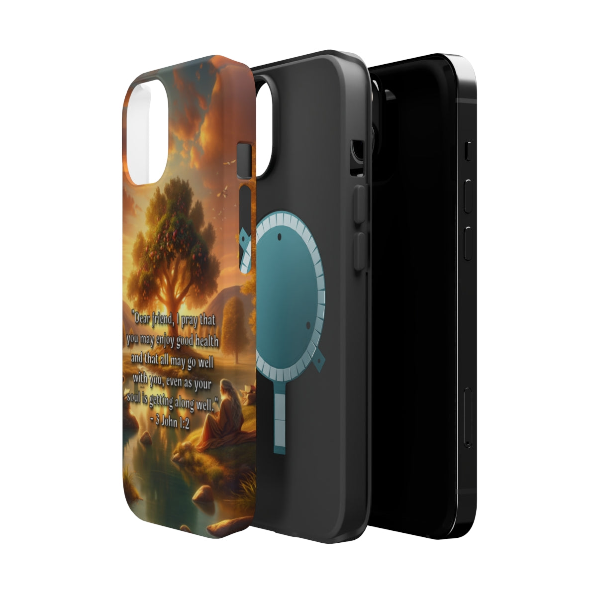 DistinctInk Tough Case for Apple iPhone, Compatible with MagSafe Charging - "Biblical Blessing: Good Health and Well-being in 3 John 1:2"