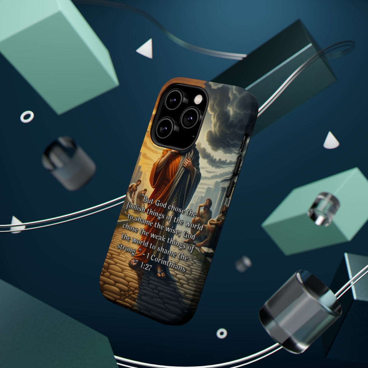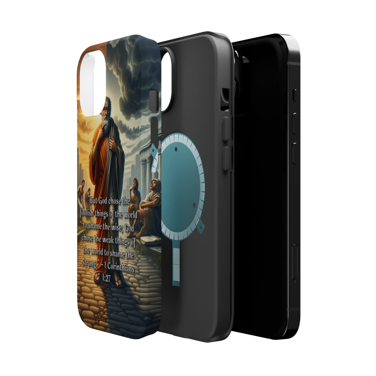 DistinctInk Tough Case for Apple iPhone, Compatible with MagSafe Charging - "Biblical Reflection: 1 Corinthians 1:27 - The Triumph of God's Wisdom"