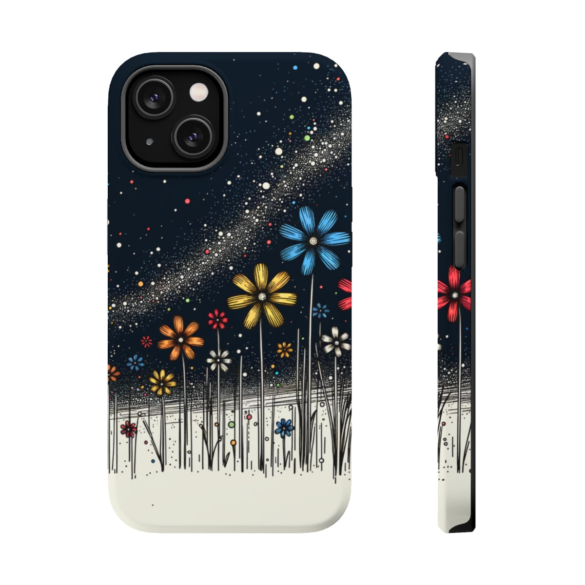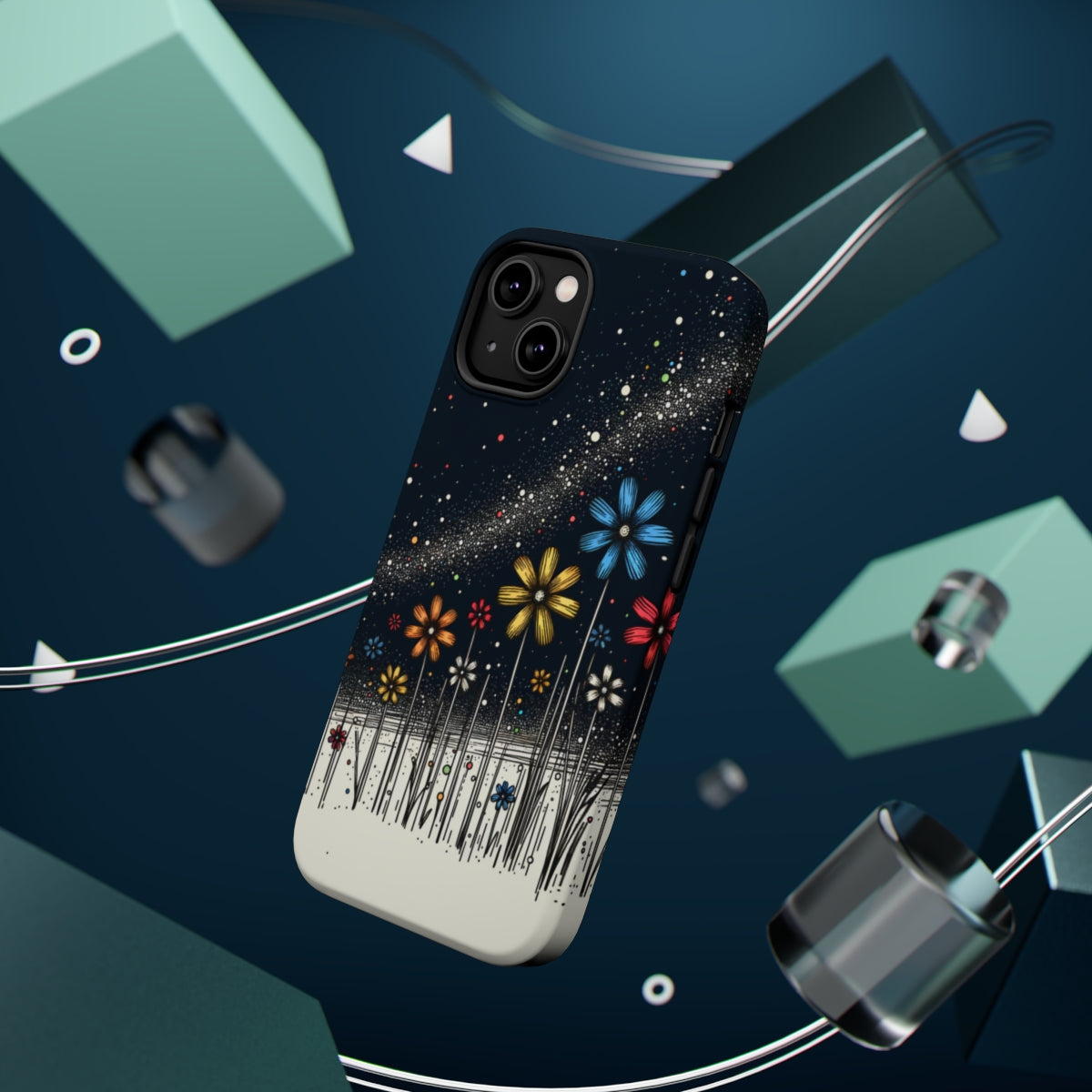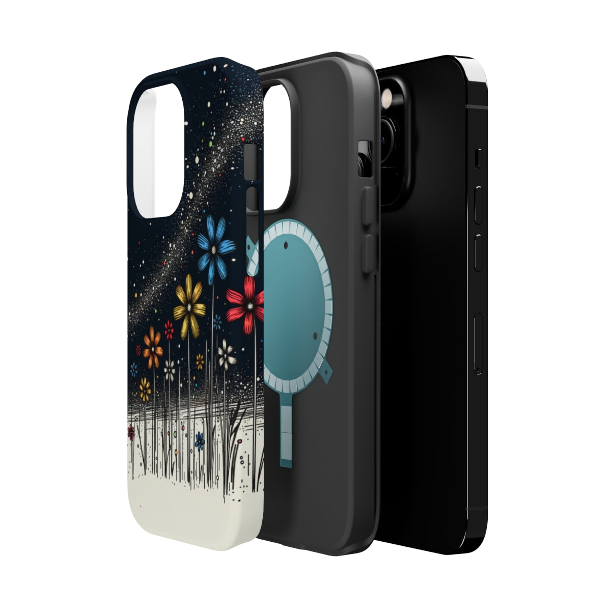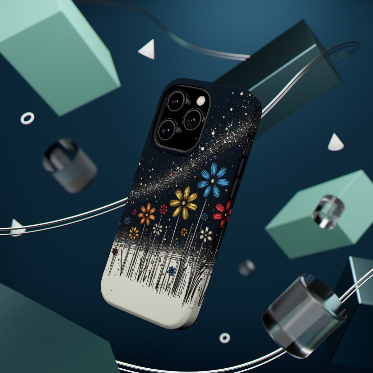DistinctInk Tough Case for Apple iPhone, Compatible with MagSafe Charging - "Blooming Cosmos: Vivid Spring Flower Collection"