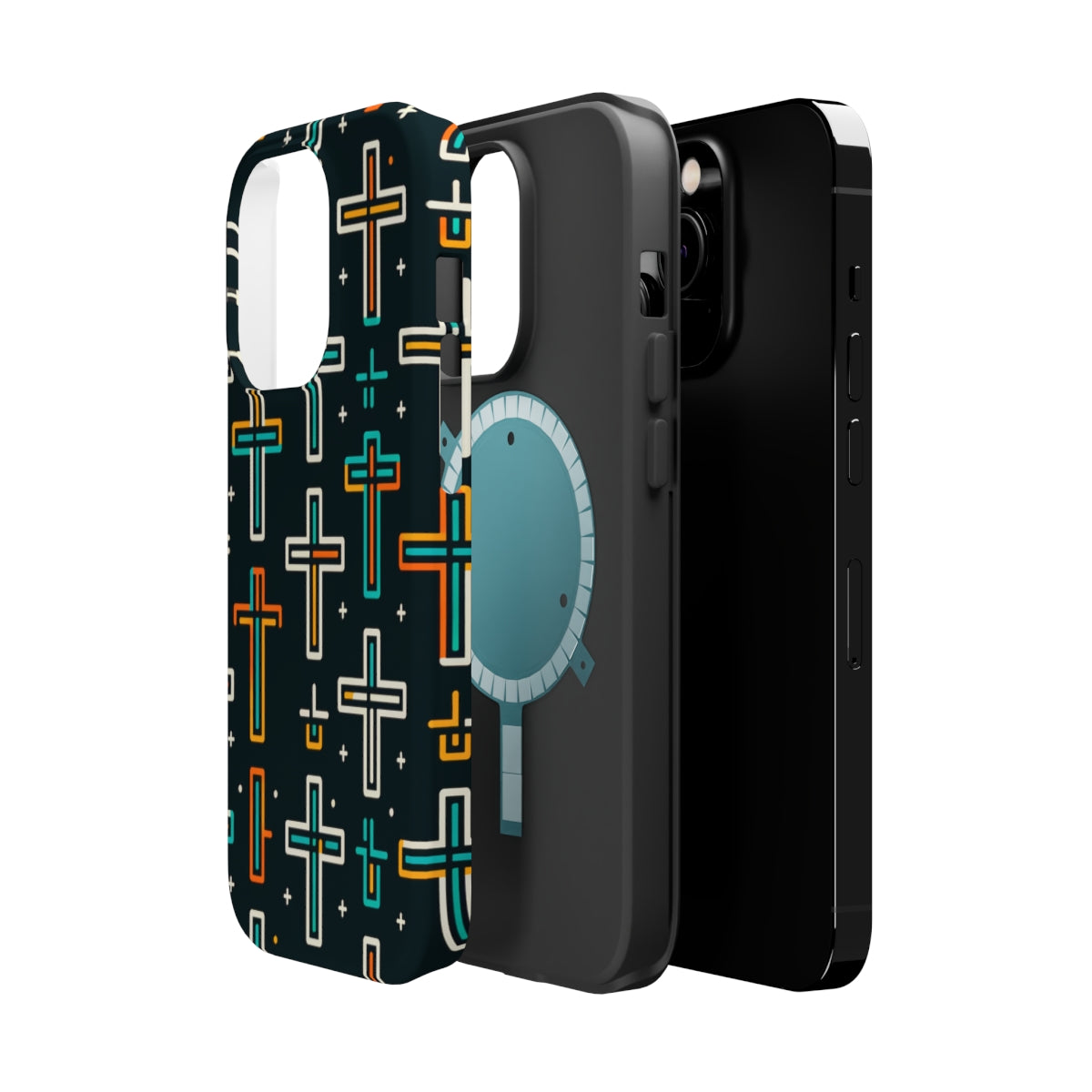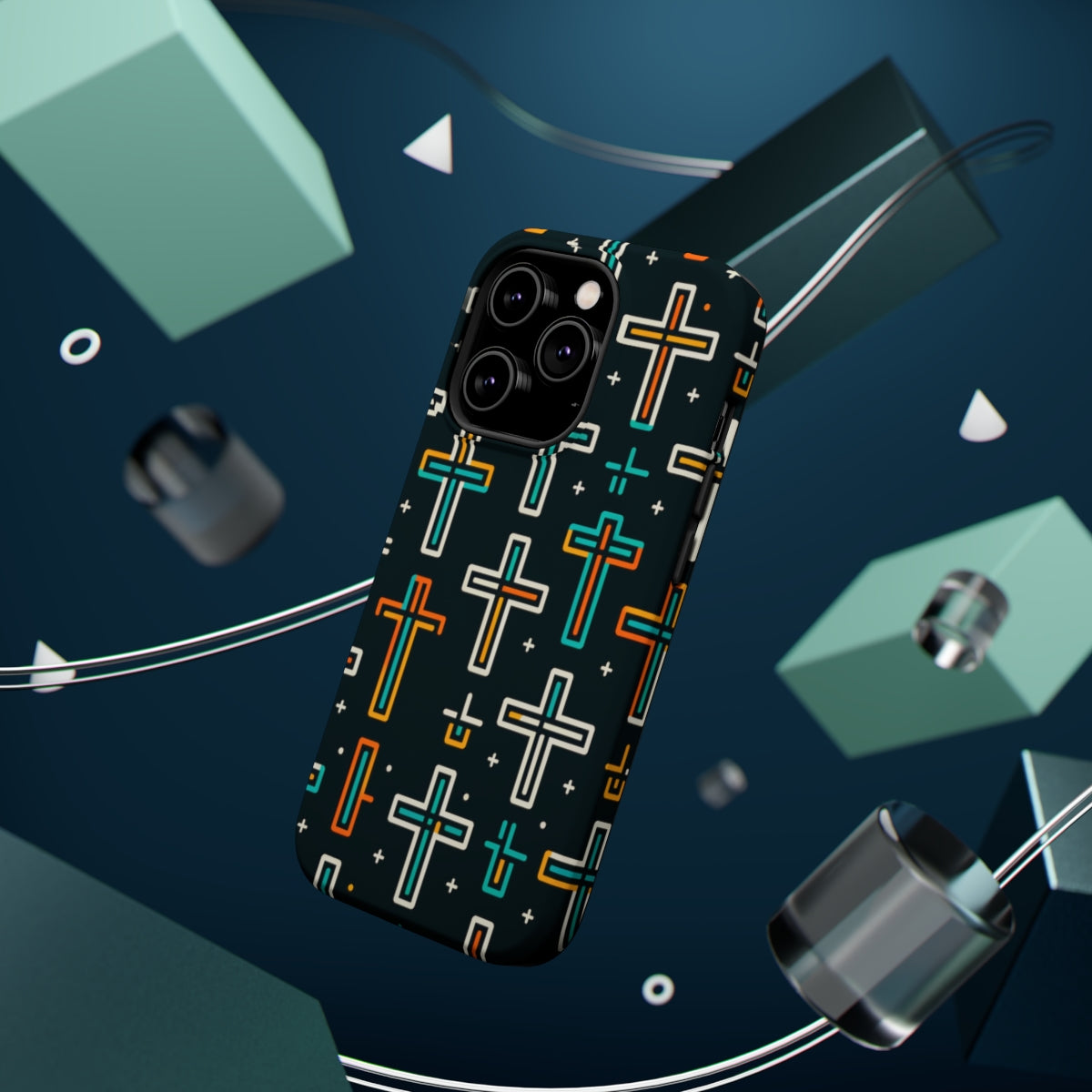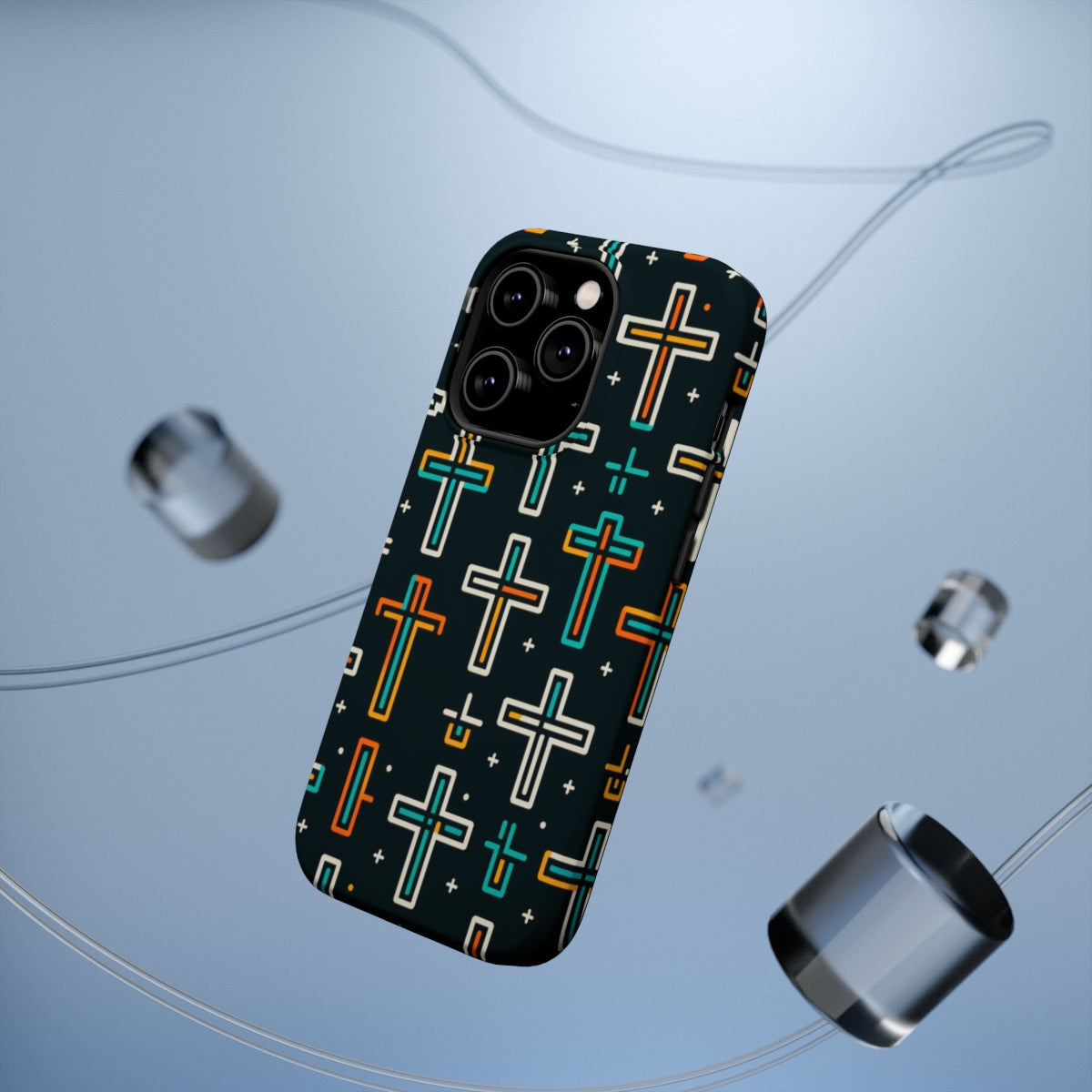 DistinctInk Tough Case for Apple iPhone, Compatible with MagSafe Charging - "Bright and Minimal Christian Cross Pattern"