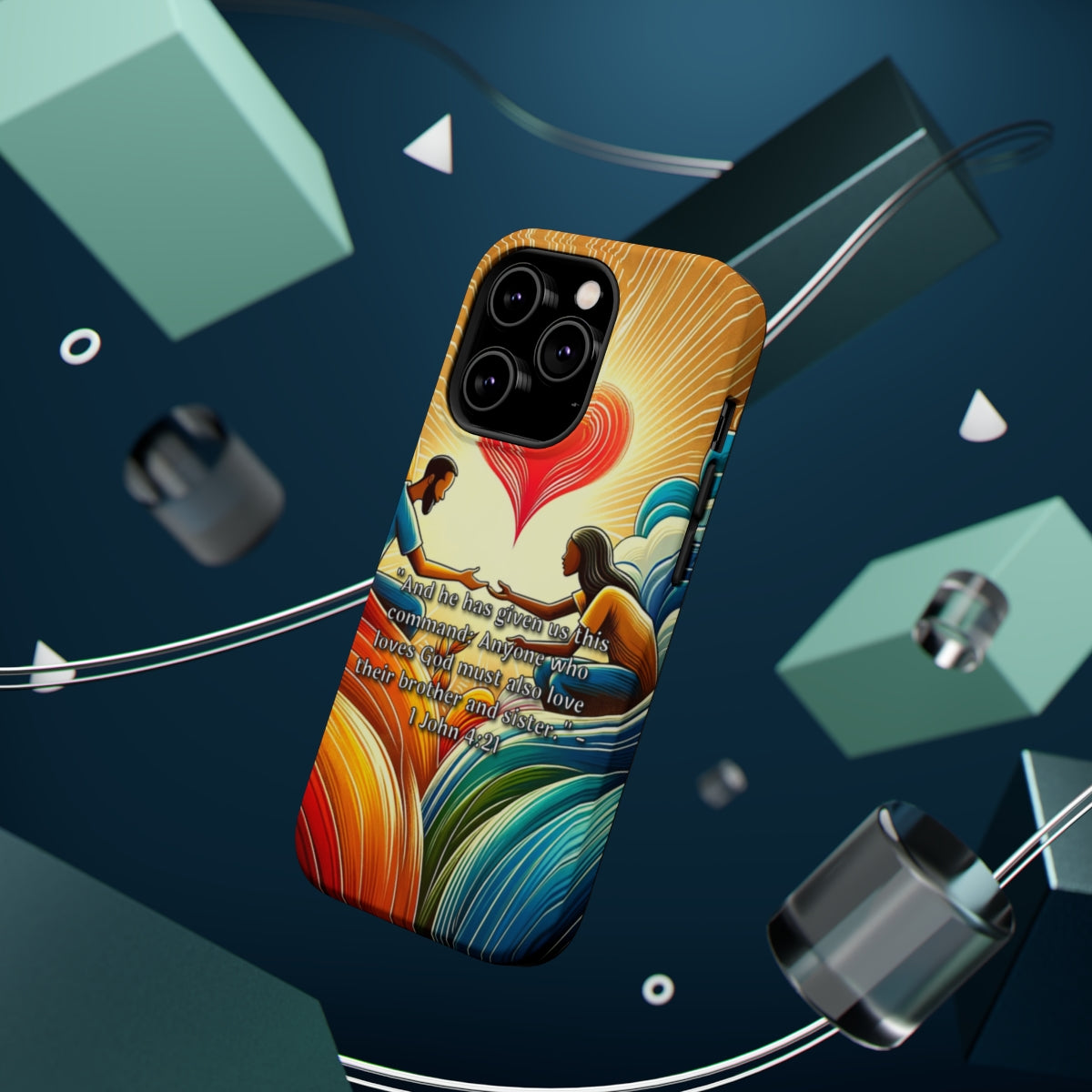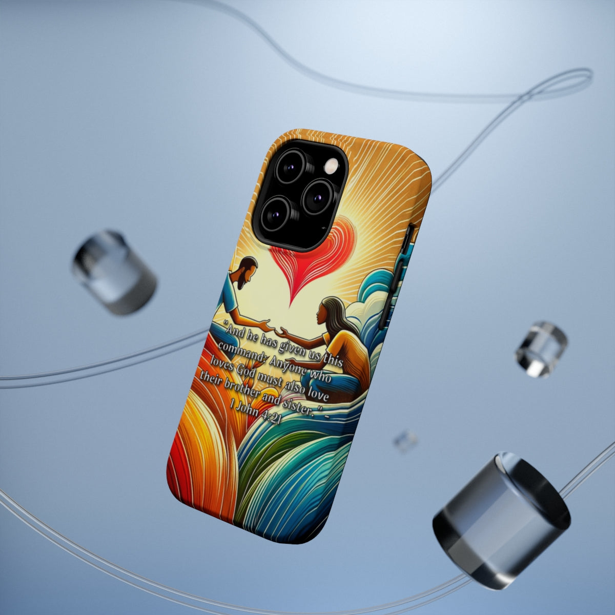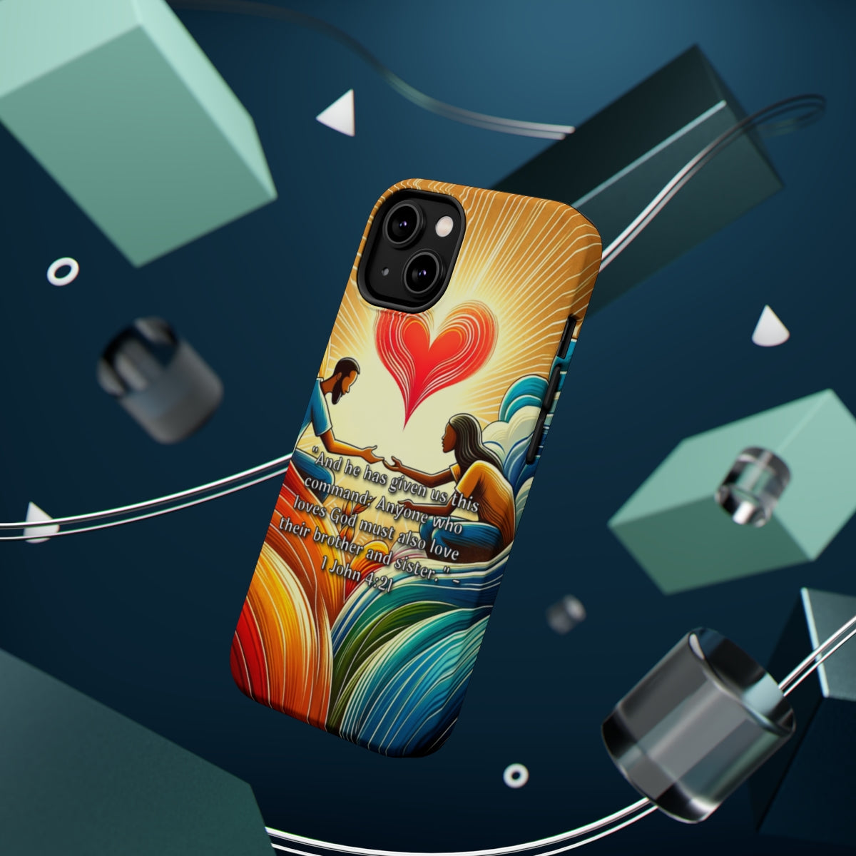 DistinctInk Tough Case for Apple iPhone, Compatible with MagSafe Charging - "Brotherly Love: Commanded by God - 1 John 4:21"