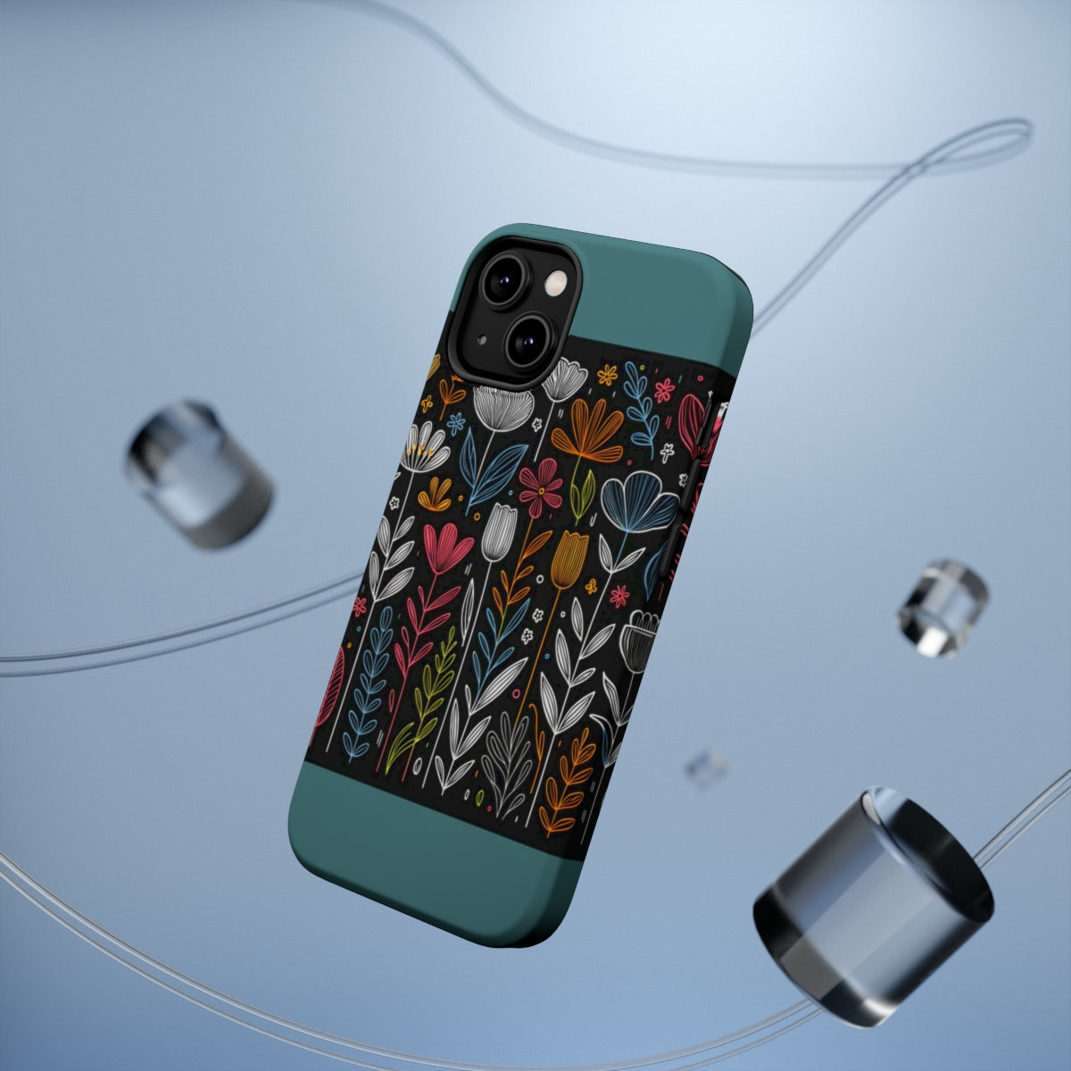 DistinctInk Tough Case for Apple iPhone, Compatible with MagSafe Charging - "Bursting Blooms: Minimalistic Cartoon-like Spring Flowers"