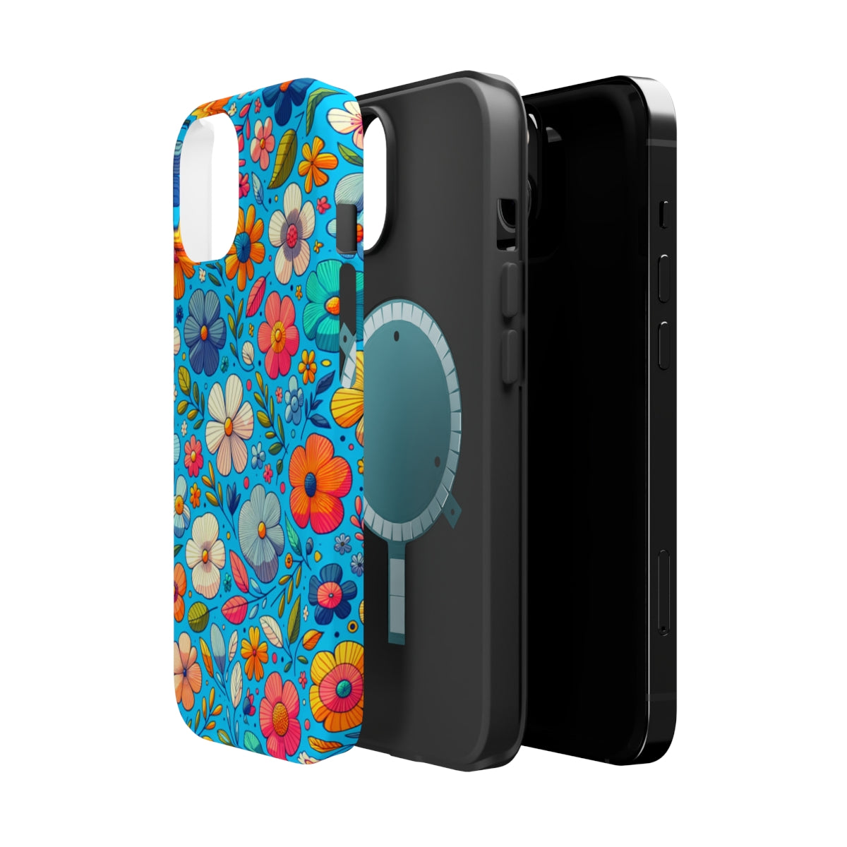 DistinctInk Tough Case for Apple iPhone, Compatible with MagSafe Charging - "Cartoon Flower Fiesta: A Vibrant Spring Pattern"