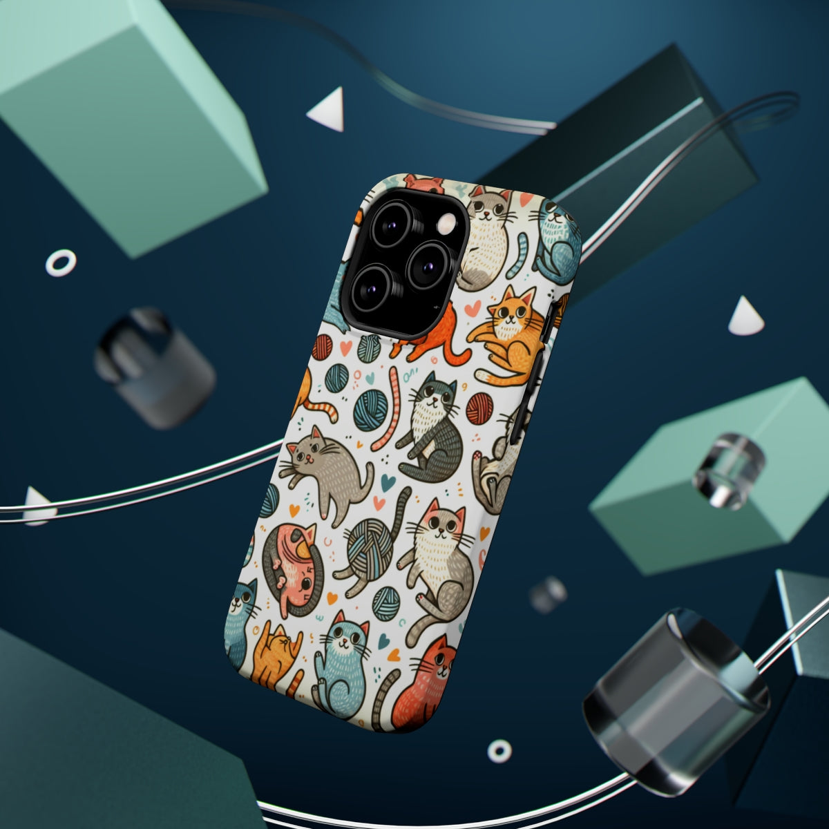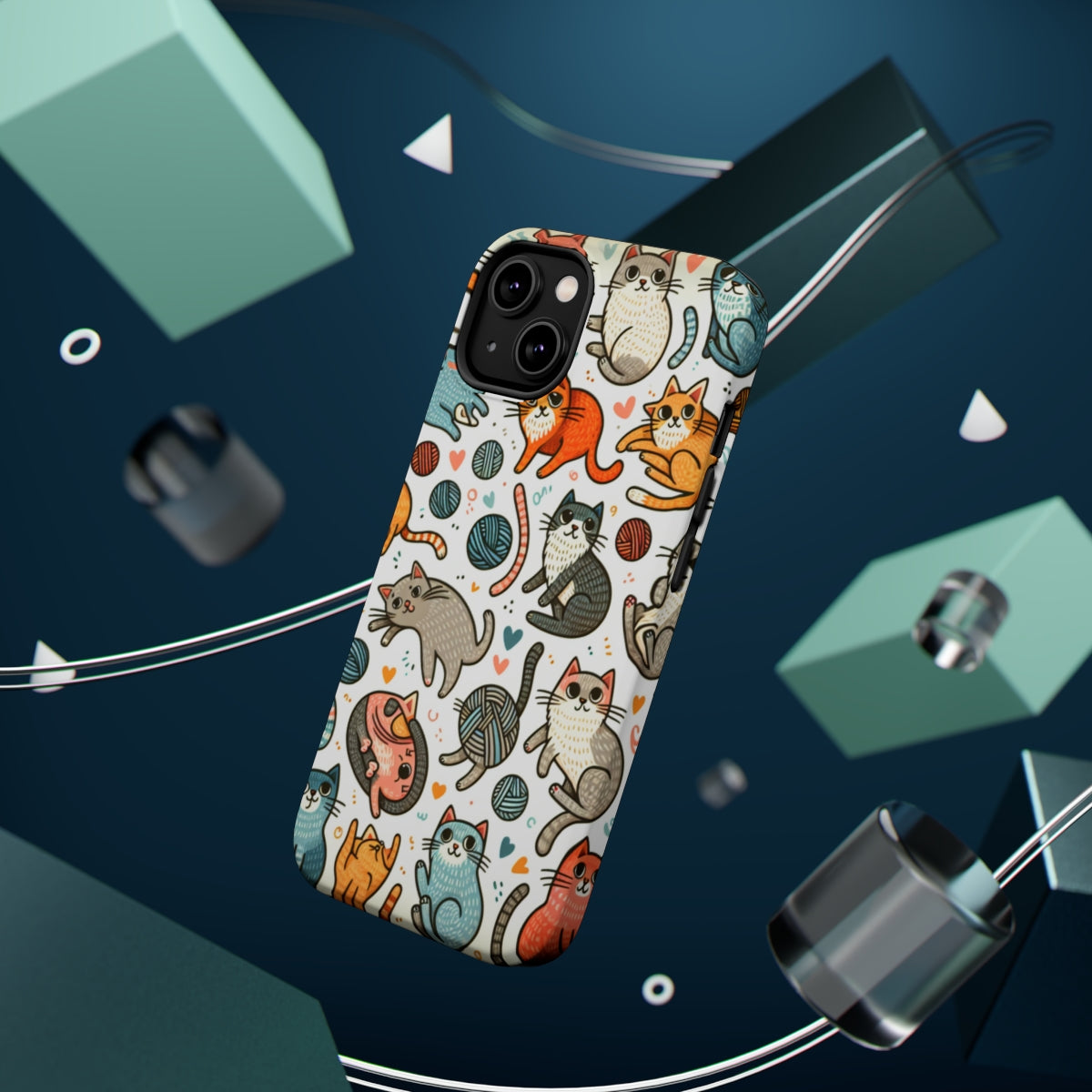 DistinctInk Tough Case for Apple iPhone, Compatible with MagSafe Charging - "Cats Galore: Playful and Whimsical Patterns"