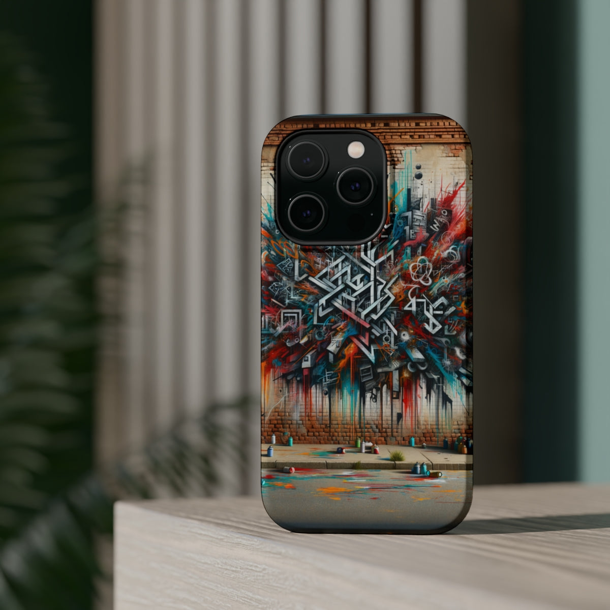 DistinctInk Tough Case for Apple iPhone, Compatible with MagSafe Charging - "Color Cascades: Vibrant Street Art Illuminates Urban Landscape"