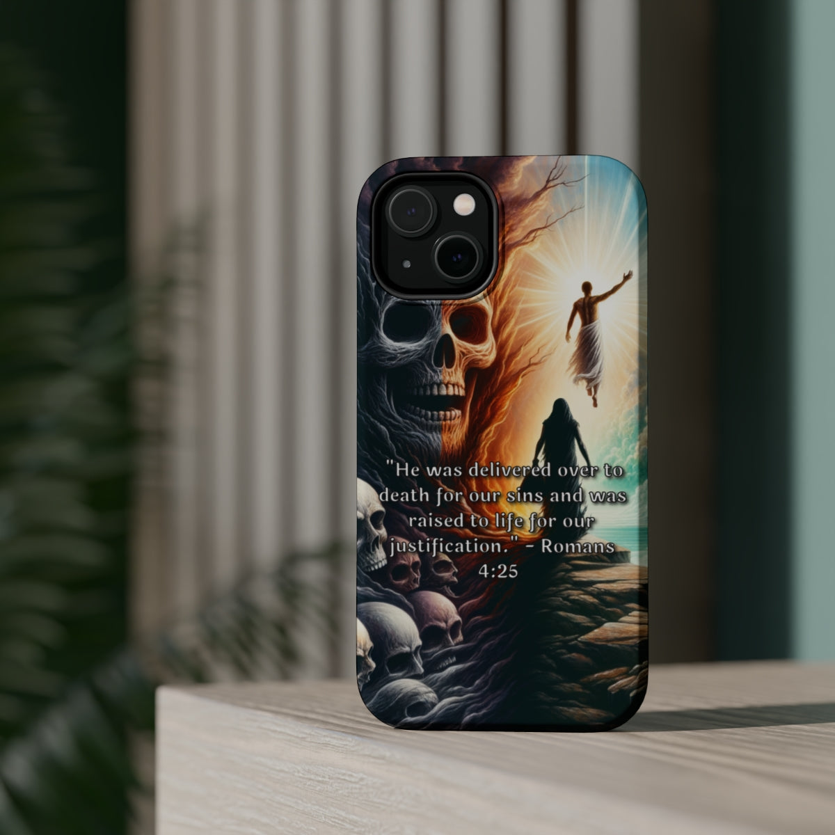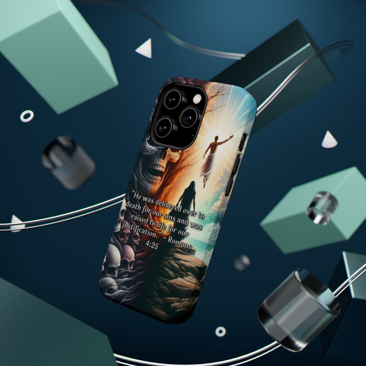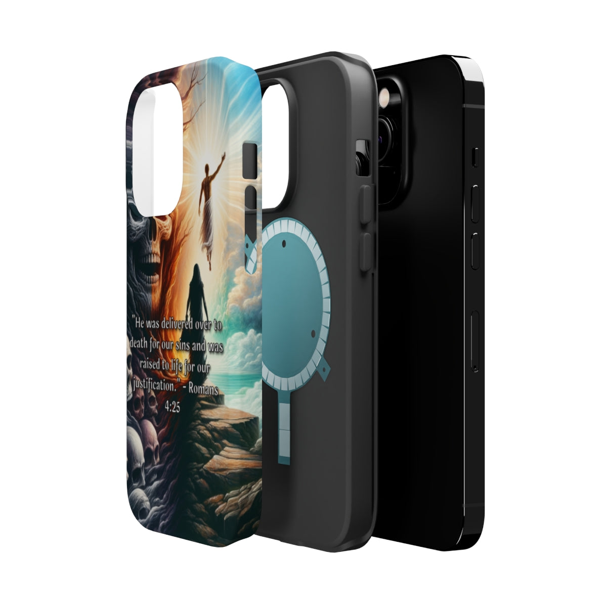 DistinctInk Tough Case for Apple iPhone, Compatible with MagSafe Charging - Delivered for Our Sins: Romans 4:25 Explanation
