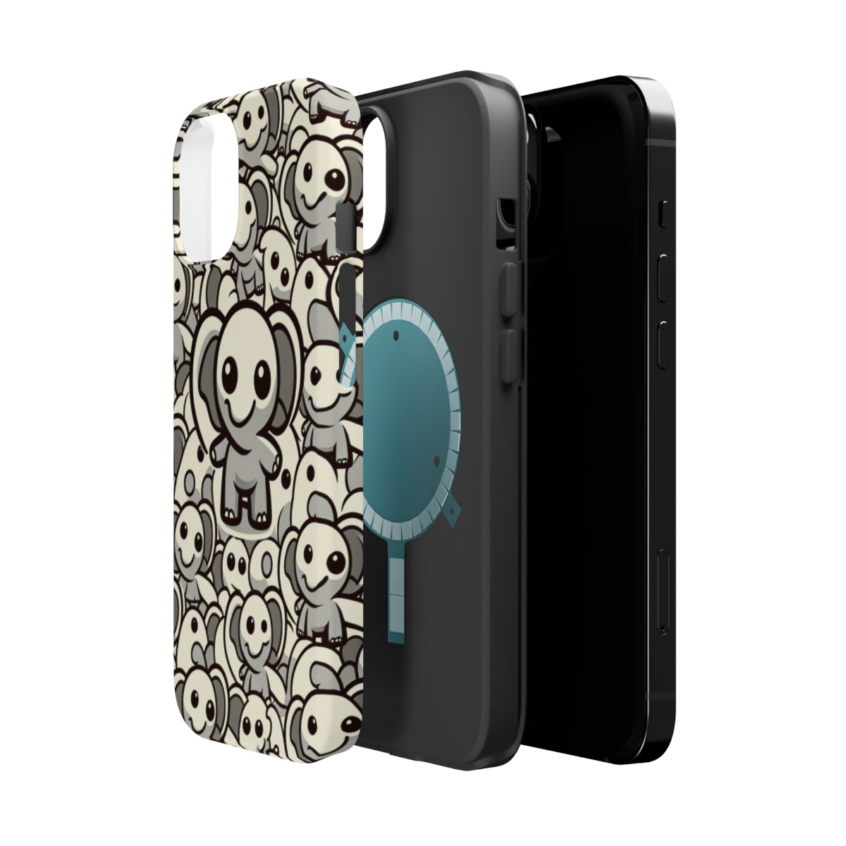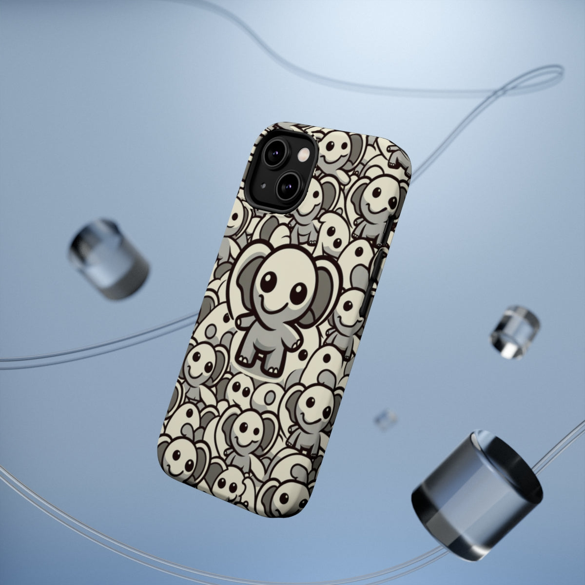 DistinctInk Tough Case for Apple iPhone, Compatible with MagSafe Charging - "Elephant Parade: A Playful Cartoon Pattern"