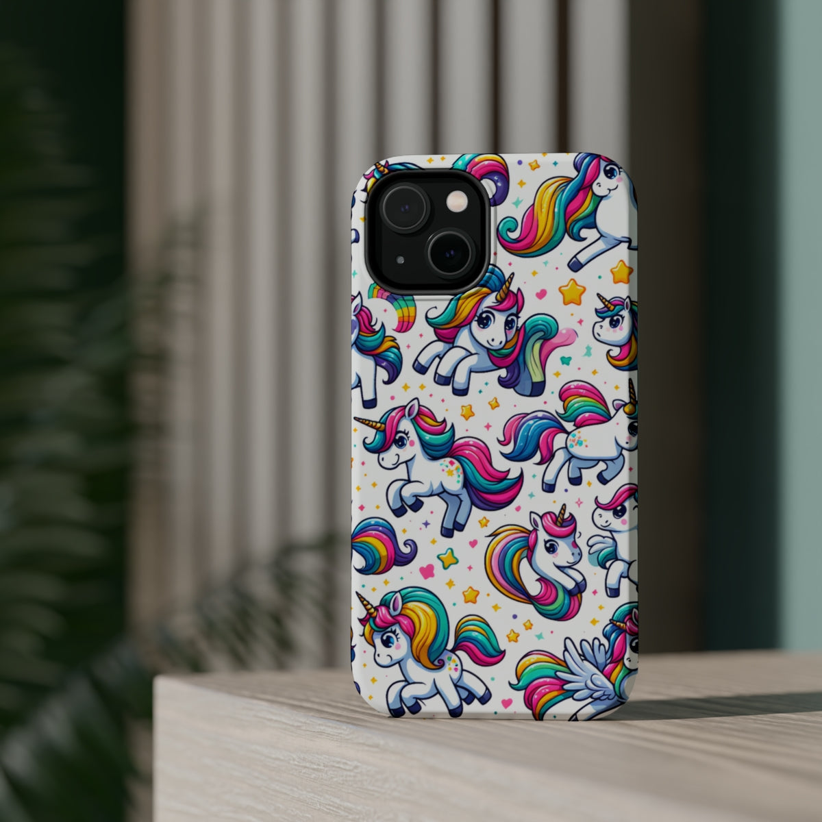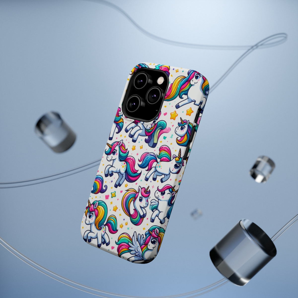 DistinctInk Tough Case for Apple iPhone, Compatible with MagSafe Charging - "Enchanting Stream of Playful Unicorns"