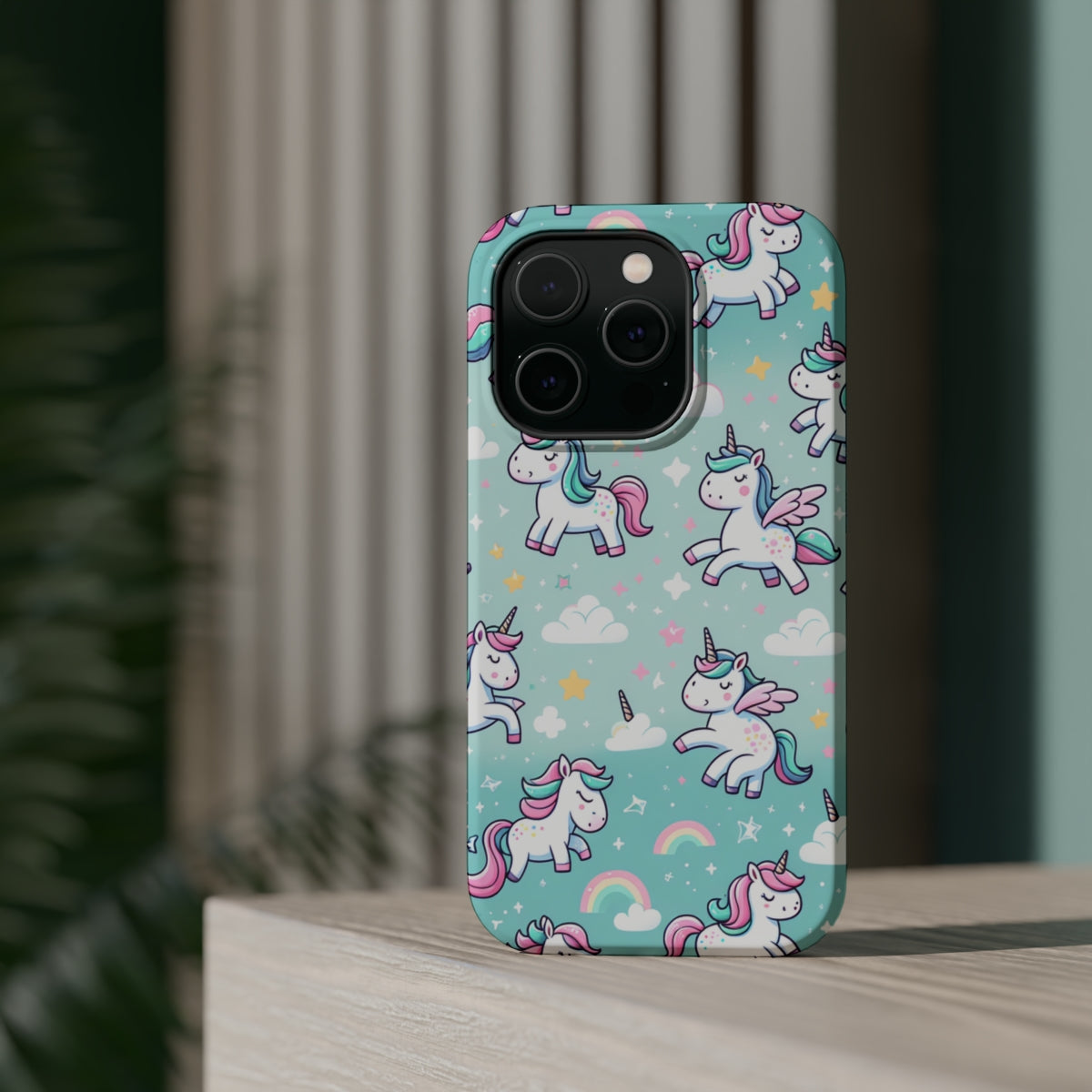 DistinctInk Tough Case for Apple iPhone, Compatible with MagSafe Charging - Enchanting Whimsy: Dancing Unicorns and Stardust