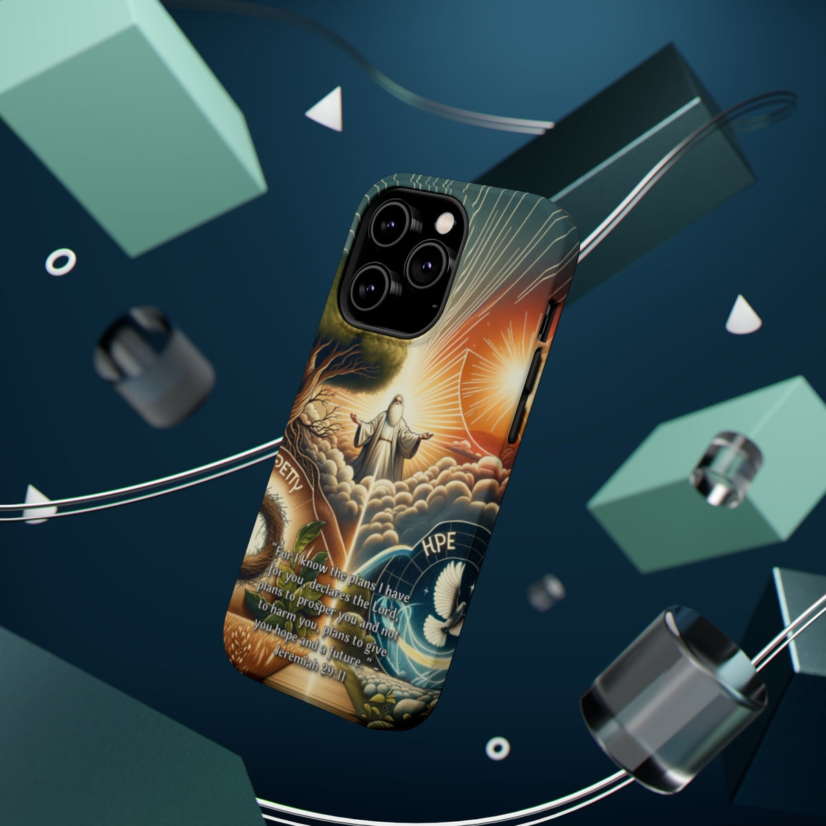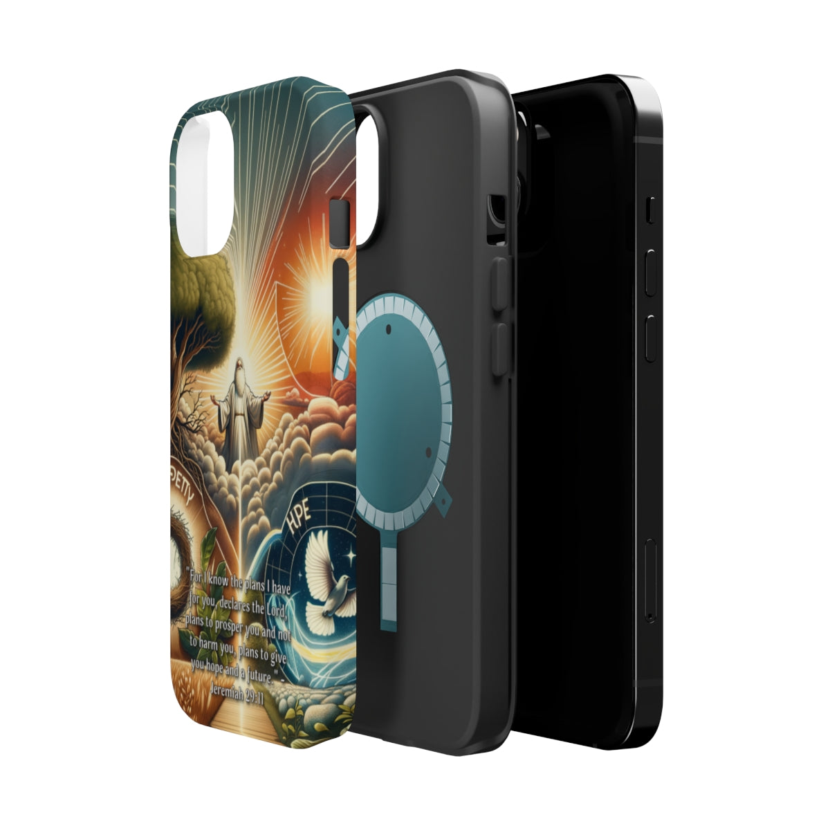 DistinctInk Tough Case for Apple iPhone, Compatible with MagSafe Charging - "For I Know the Plans: Jeremiah 29:11 Offers Hope and Prosperity"