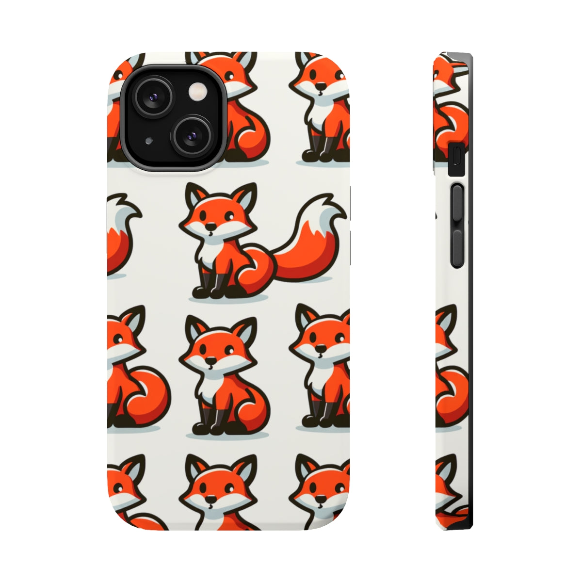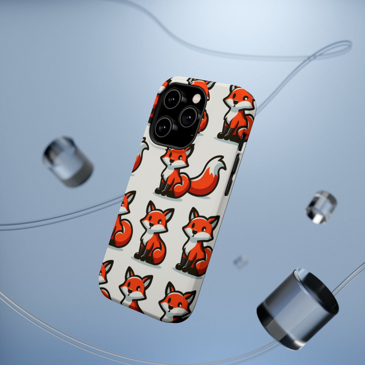 DistinctInk Tough Case for Apple iPhone, Compatible with MagSafe Charging - "Fox Fun: A Playful Repeating Pattern"