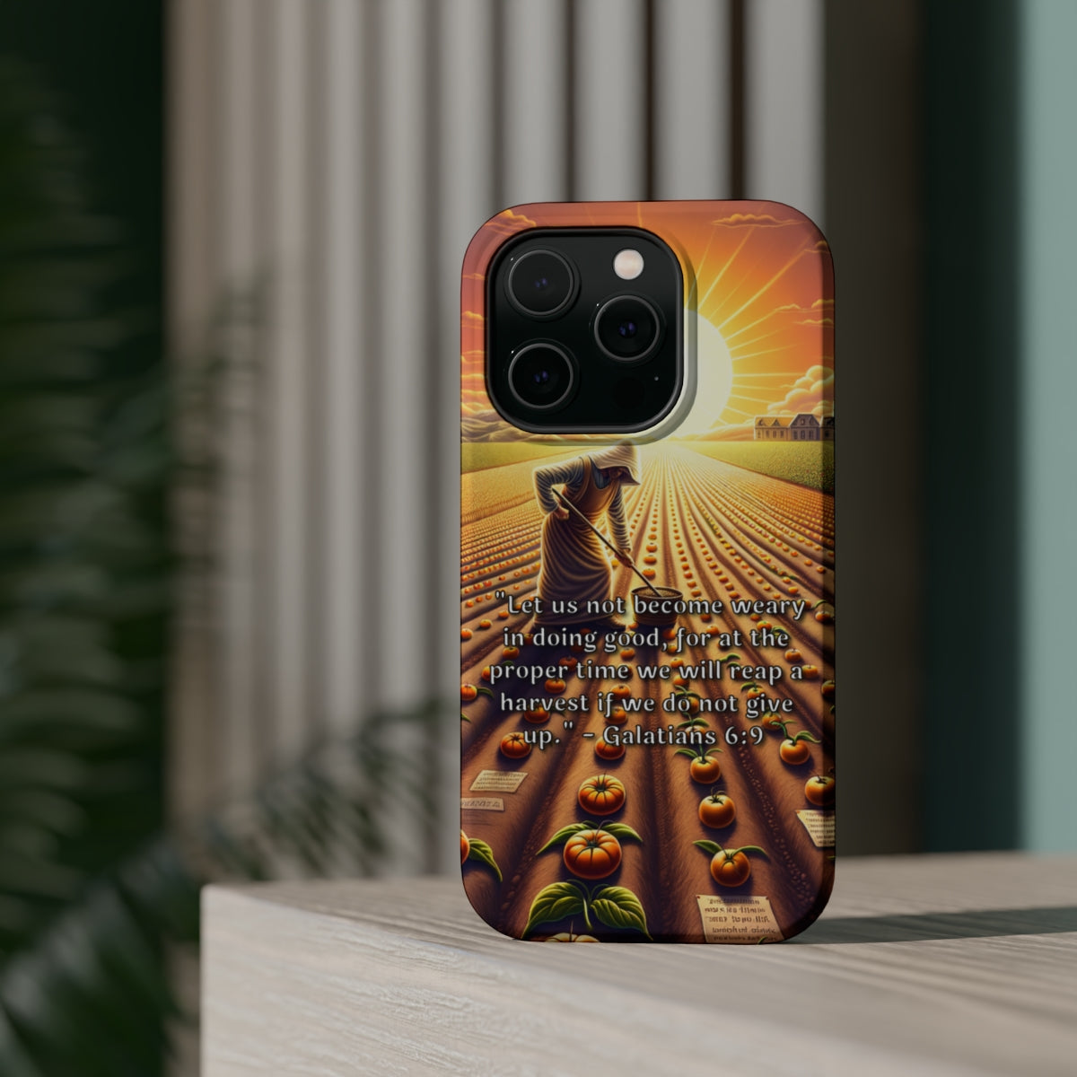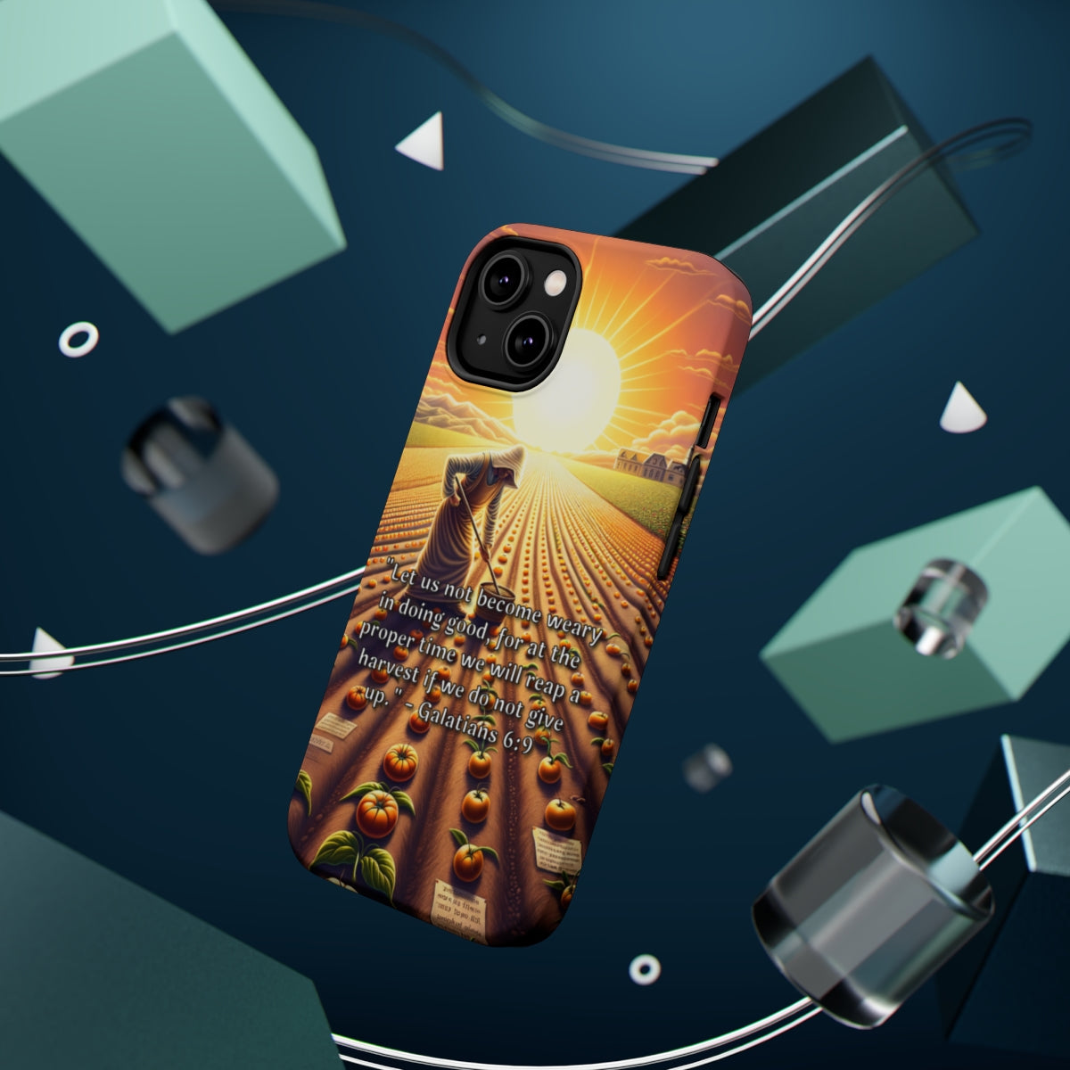 DistinctInk Tough Case for Apple iPhone, Compatible with MagSafe Charging - Galatians 6:9: Perseverance in Good Will Bring Reward