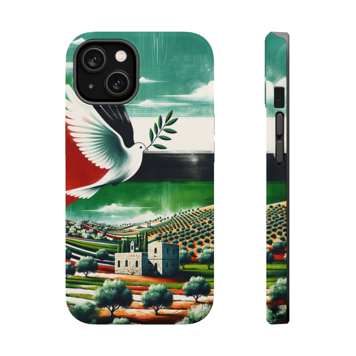 DistinctInk Tough Case for Apple iPhone, Compatible with MagSafe Charging - "Harmonious Palestinian Landscapes: A Symbolic Representation"