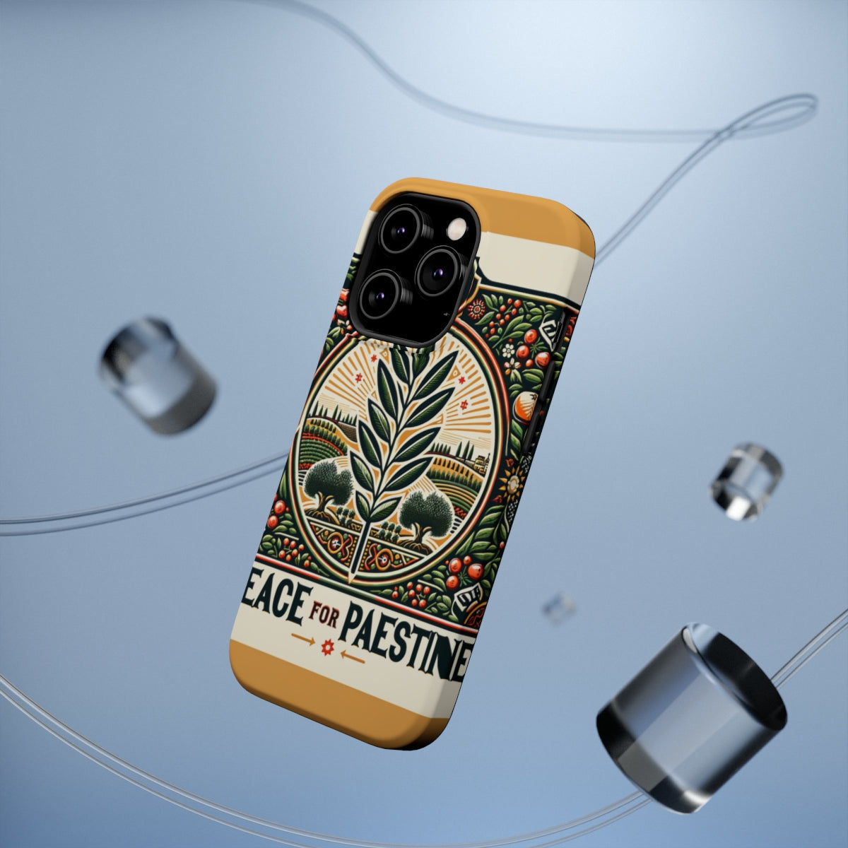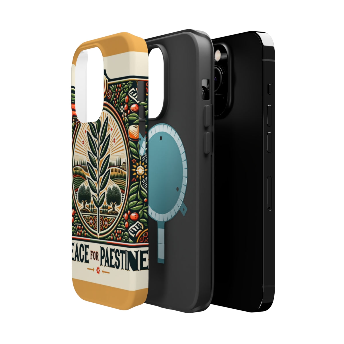 DistinctInk Tough Case for Apple iPhone, Compatible with MagSafe Charging - "Harmony Blossoms: A Symbolic Peace for Palestine"