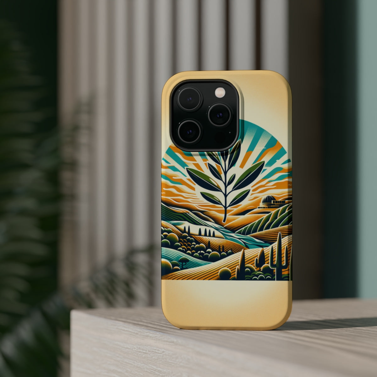 DistinctInk Tough Case for Apple iPhone, Compatible with MagSafe Charging - "Harmony in Israel's Golden Horizon"