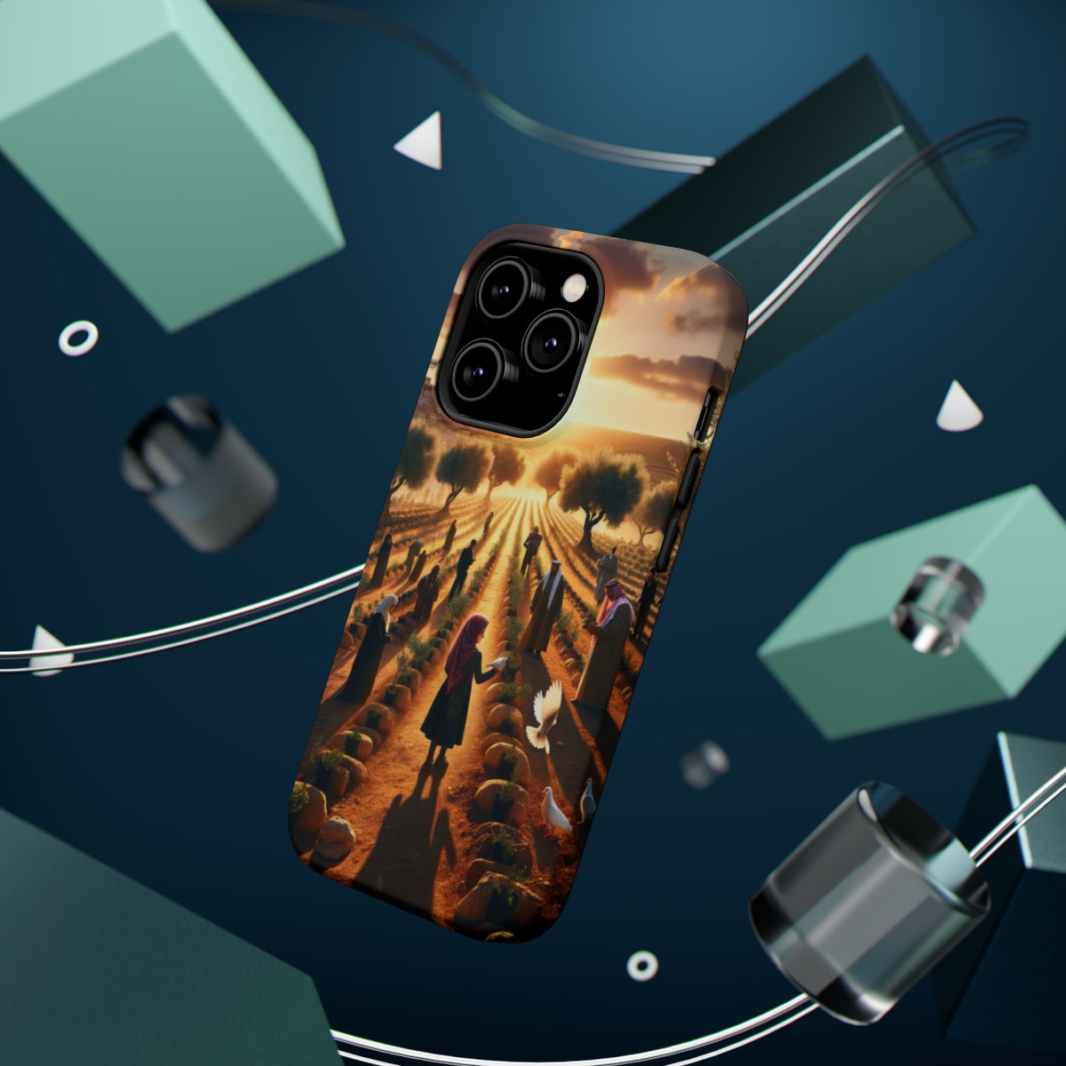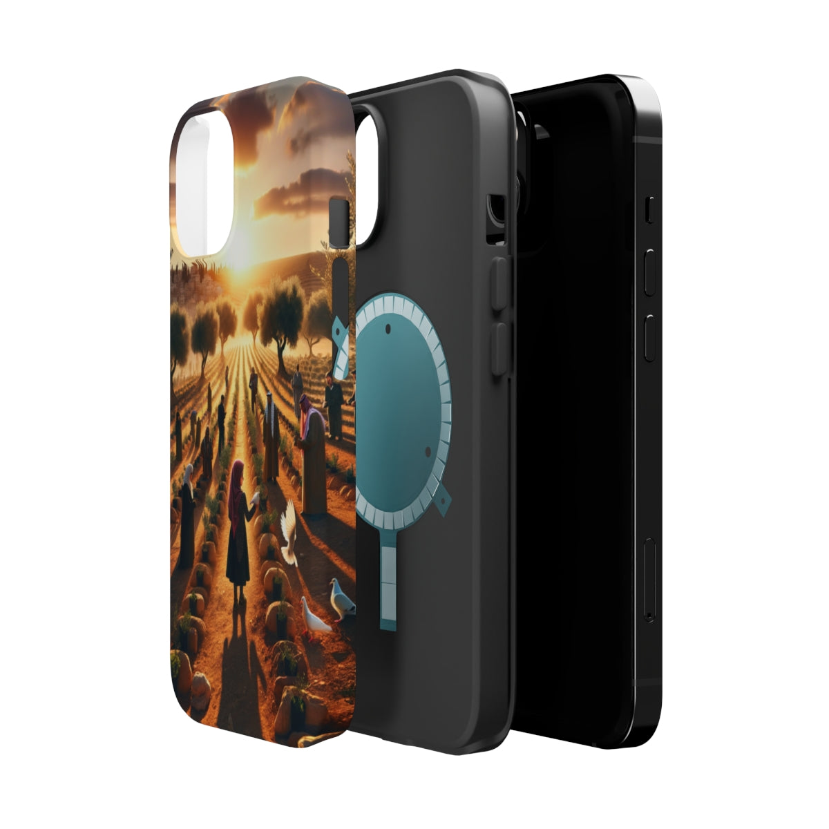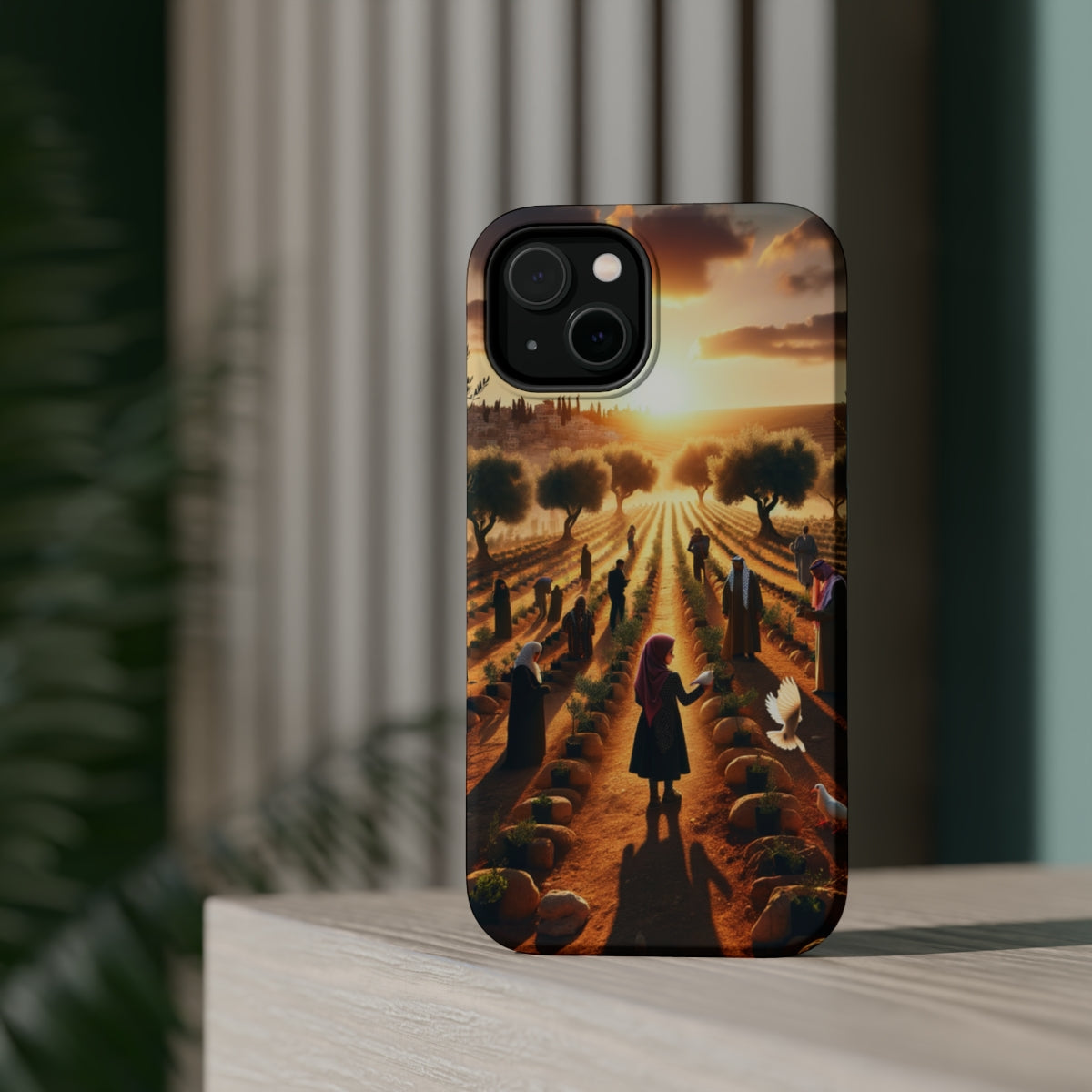 DistinctInk Tough Case for Apple iPhone, Compatible with MagSafe Charging - "Harmony Through Unity: Planting Olive Trees"