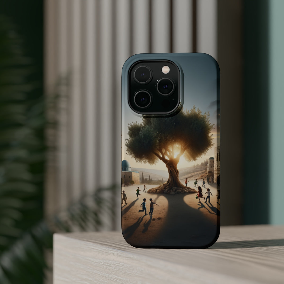 DistinctInk Tough Case for Apple iPhone, Compatible with MagSafe Charging - "Harmony Under the Olive Tree: A Peaceful Palestine"