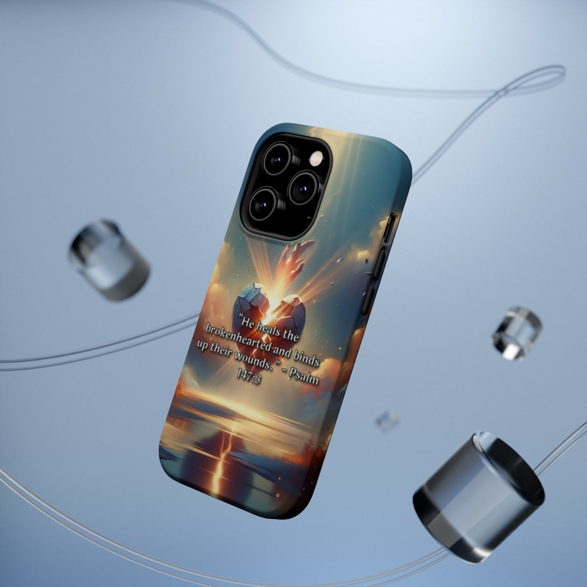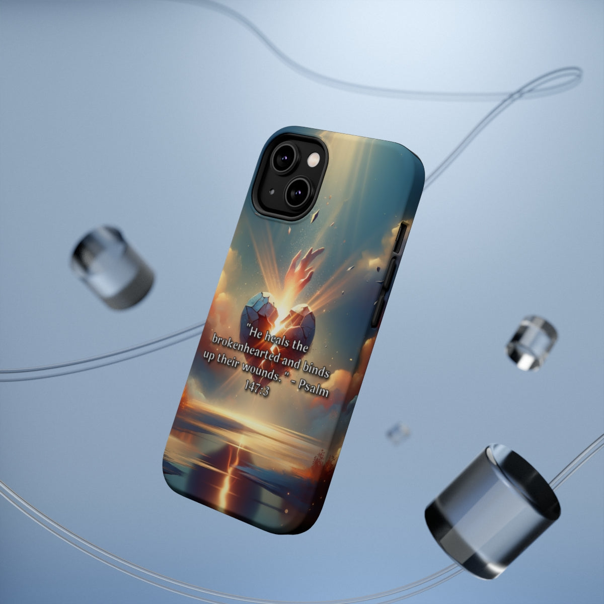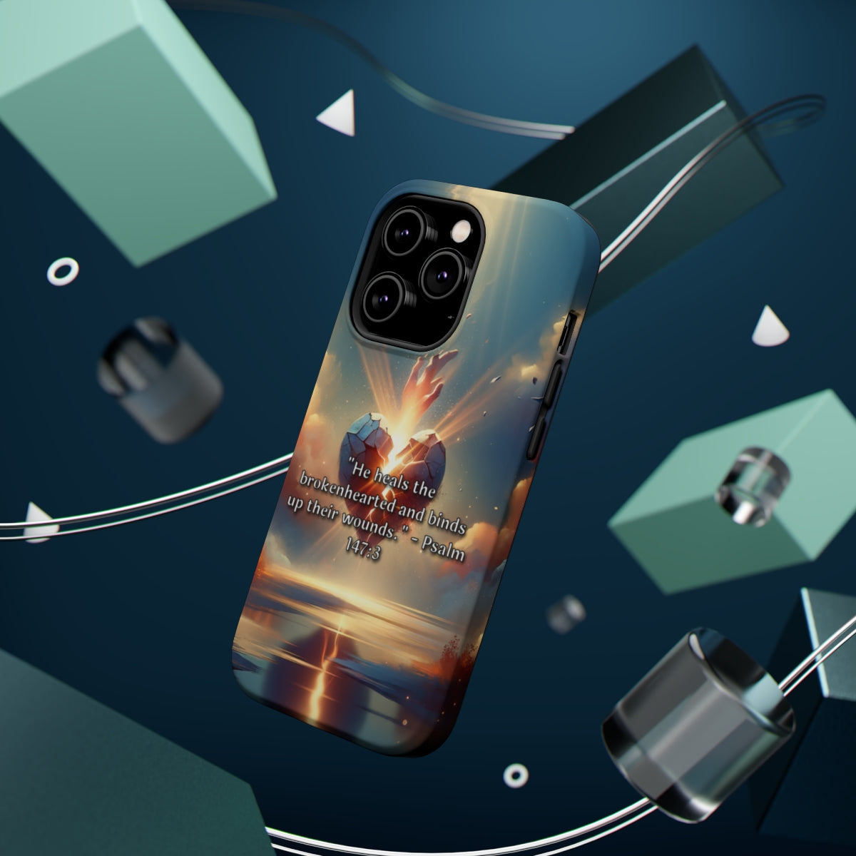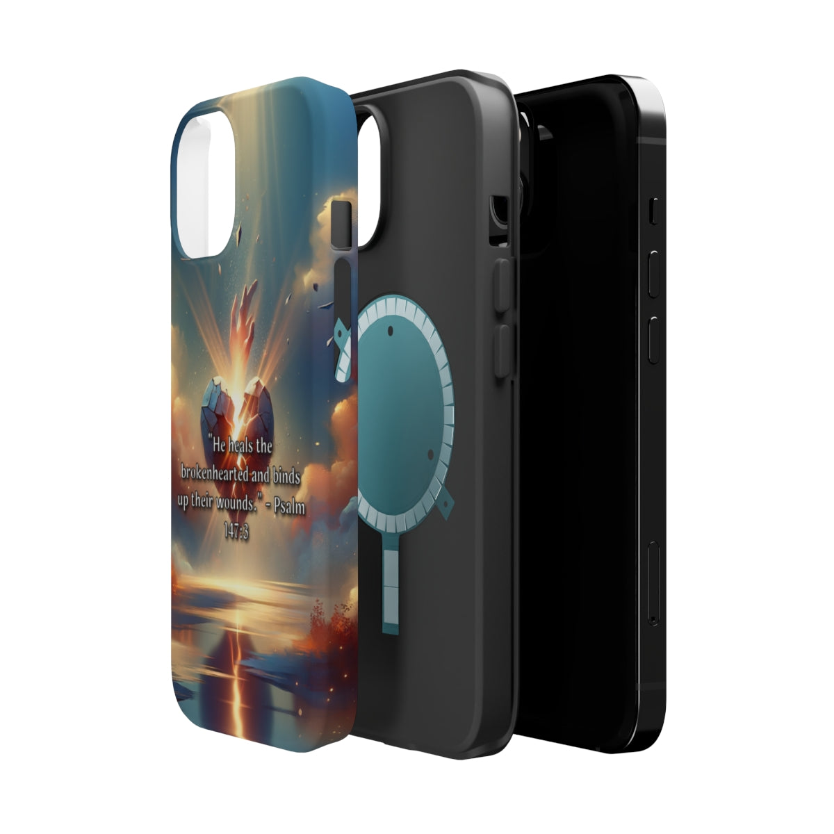 DistinctInk Tough Case for Apple iPhone, Compatible with MagSafe Charging - "Healing the Brokenhearted: Psalm 147:3 Offers Comforting Wisdom"