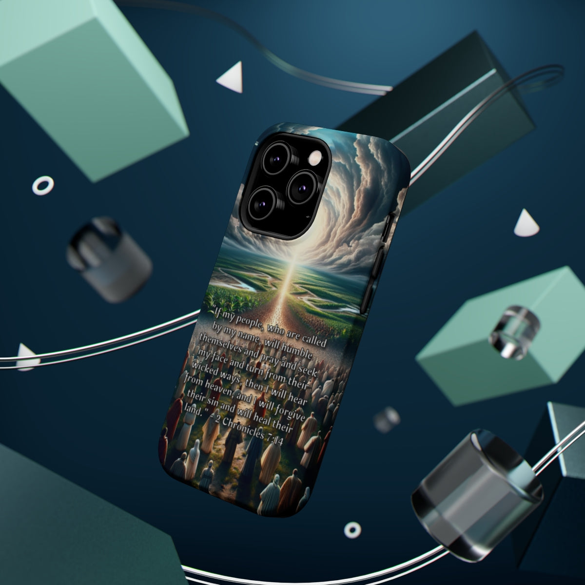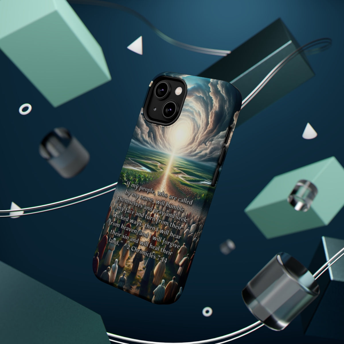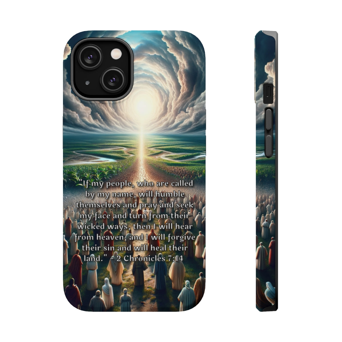 DistinctInk Tough Case for Apple iPhone, Compatible with MagSafe Charging - Healing Through Humility: 2 Chronicles 7:14