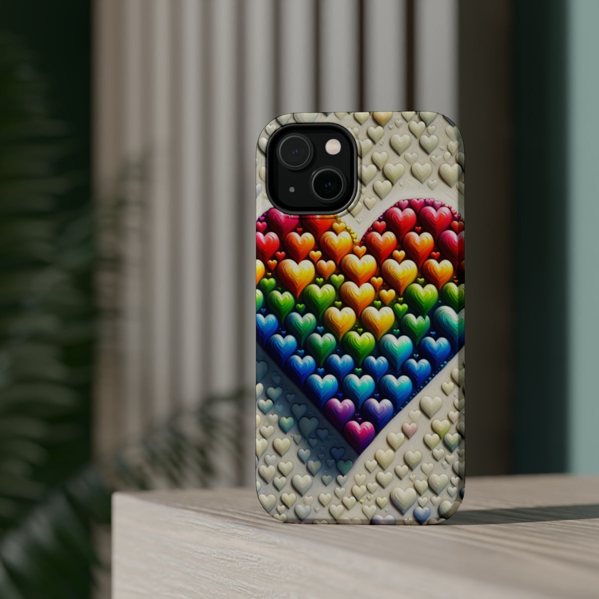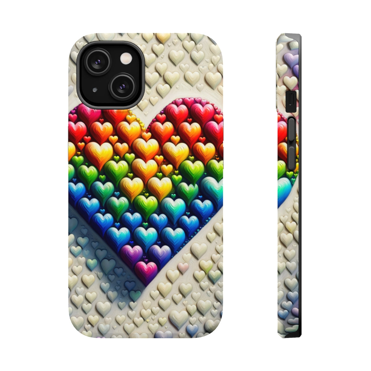 DistinctInk Tough Case for Apple iPhone, Compatible with MagSafe Charging - "Heartfelt Rainbow: A Textured Oil Painting"