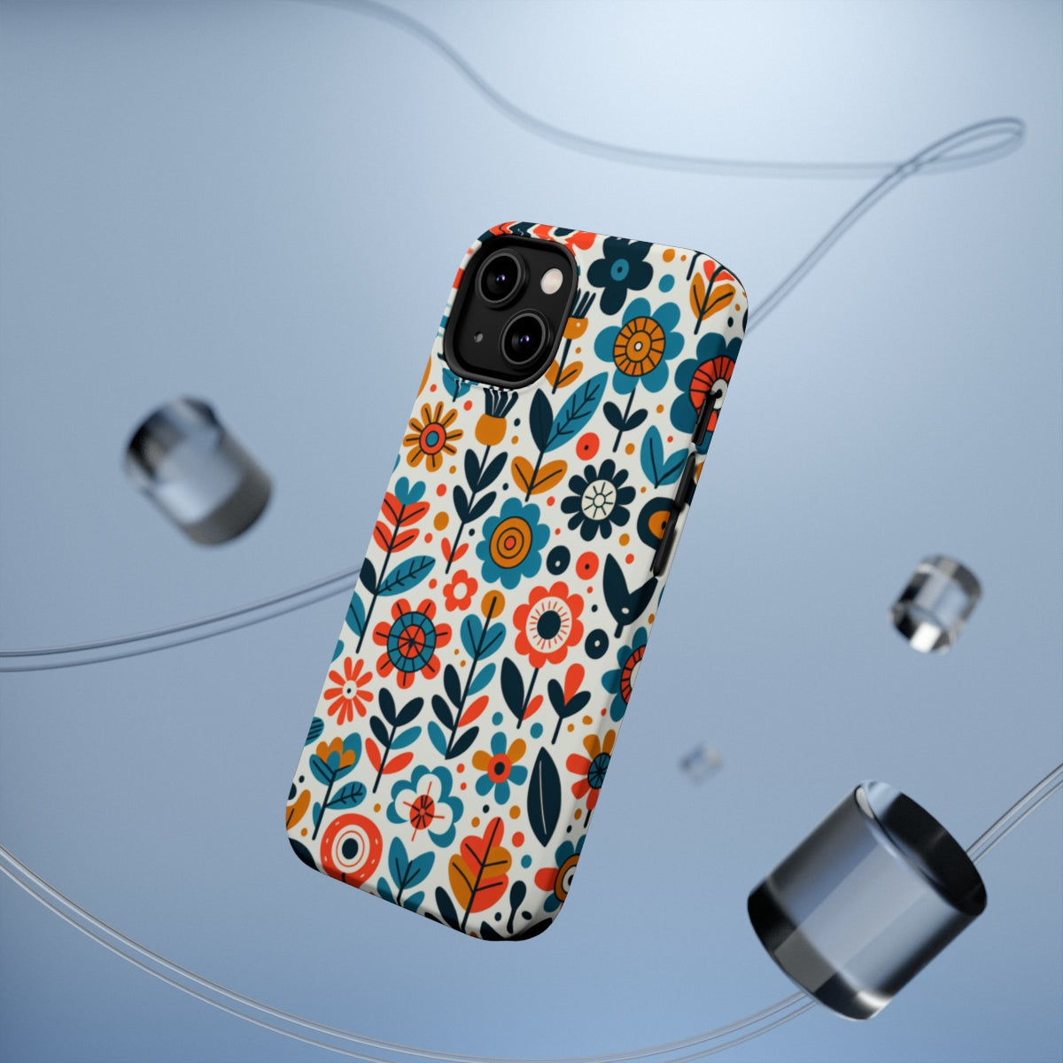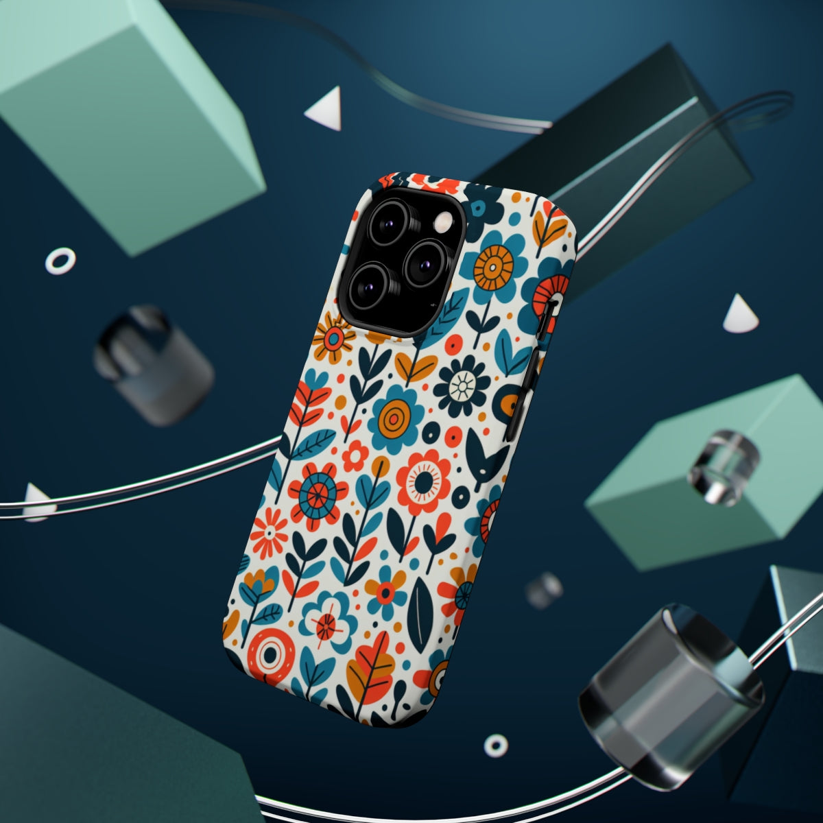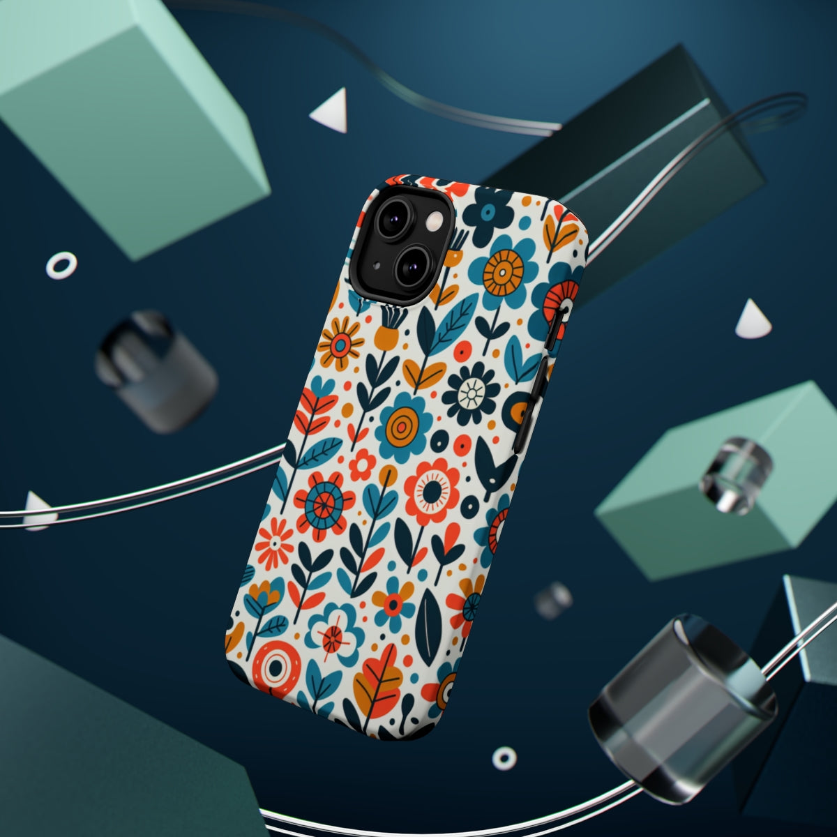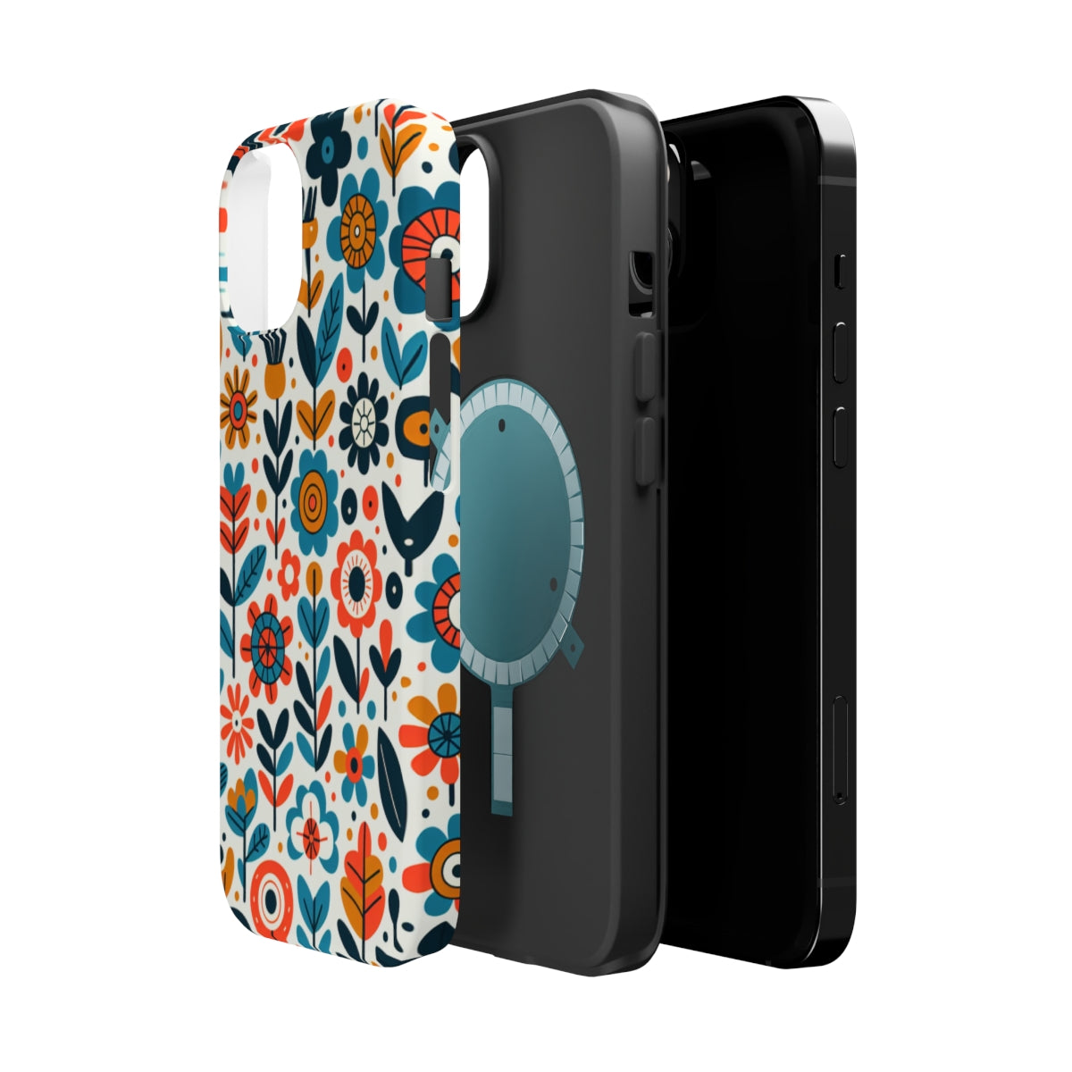 DistinctInk Tough Case for Apple iPhone, Compatible with MagSafe Charging - "Infinite Whimsical Cartoon Flower Harmony"