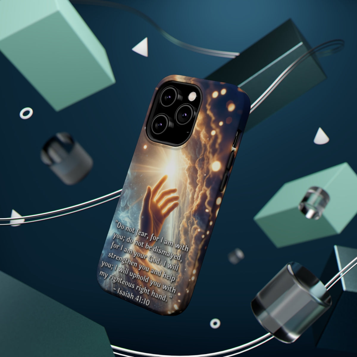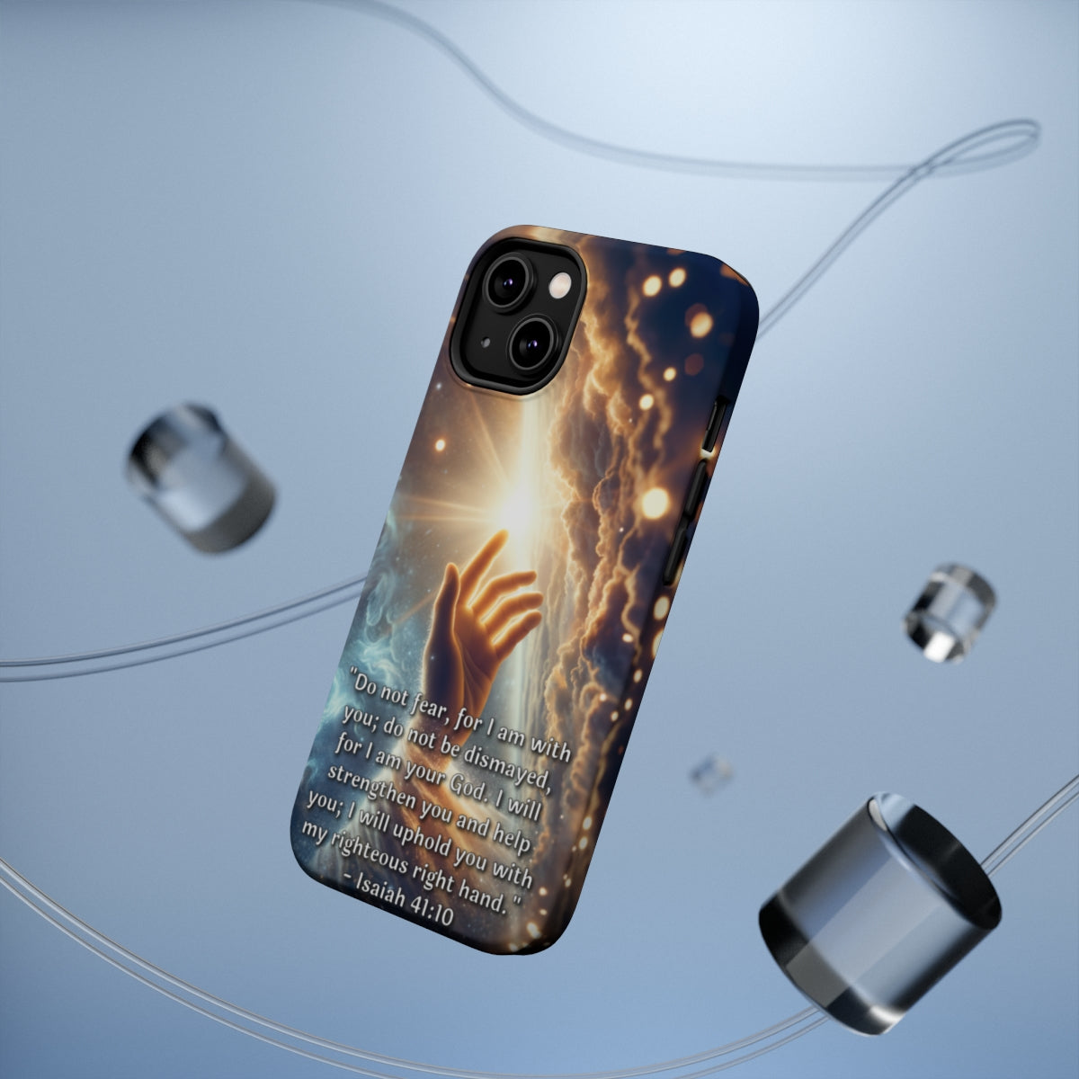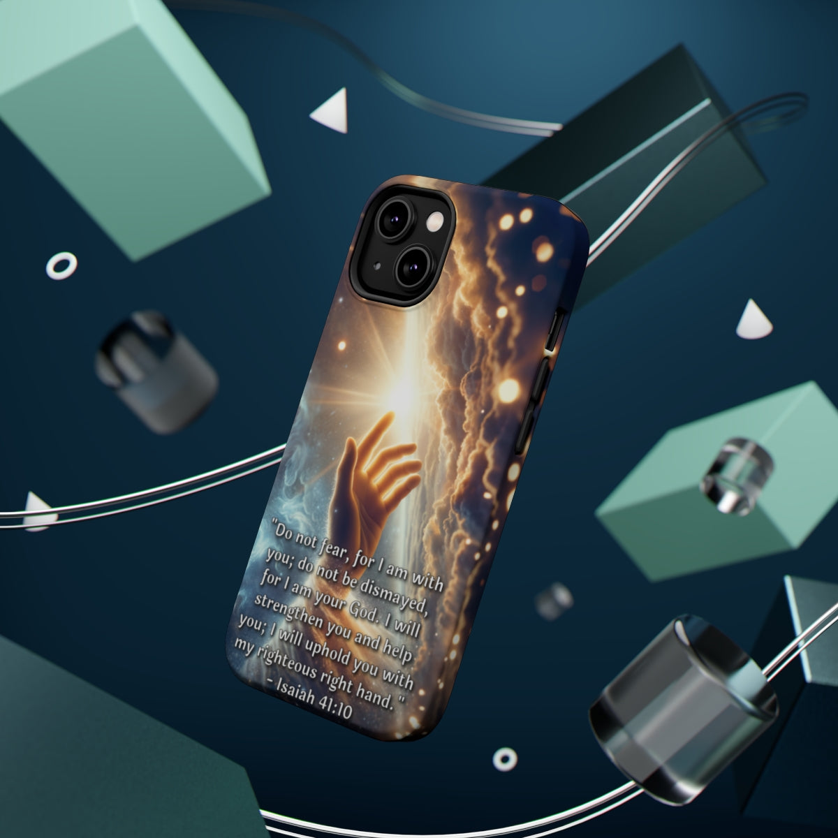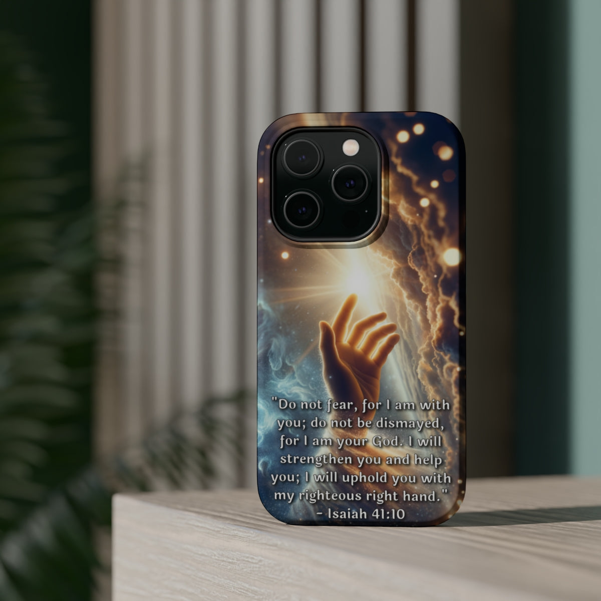 DistinctInk Tough Case for Apple iPhone, Compatible with MagSafe Charging - "Isaiah 41:10 - Finding Strength and Comfort in God"