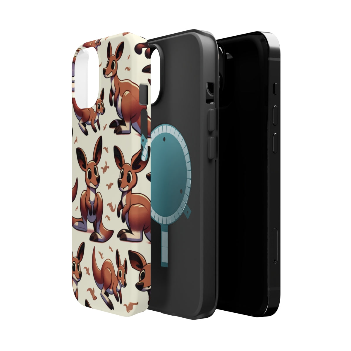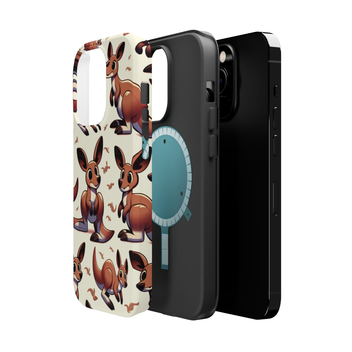 DistinctInk Tough Case for Apple iPhone, Compatible with MagSafe Charging - "Jovial Kangaroo Play: A Cartoon Pattern"