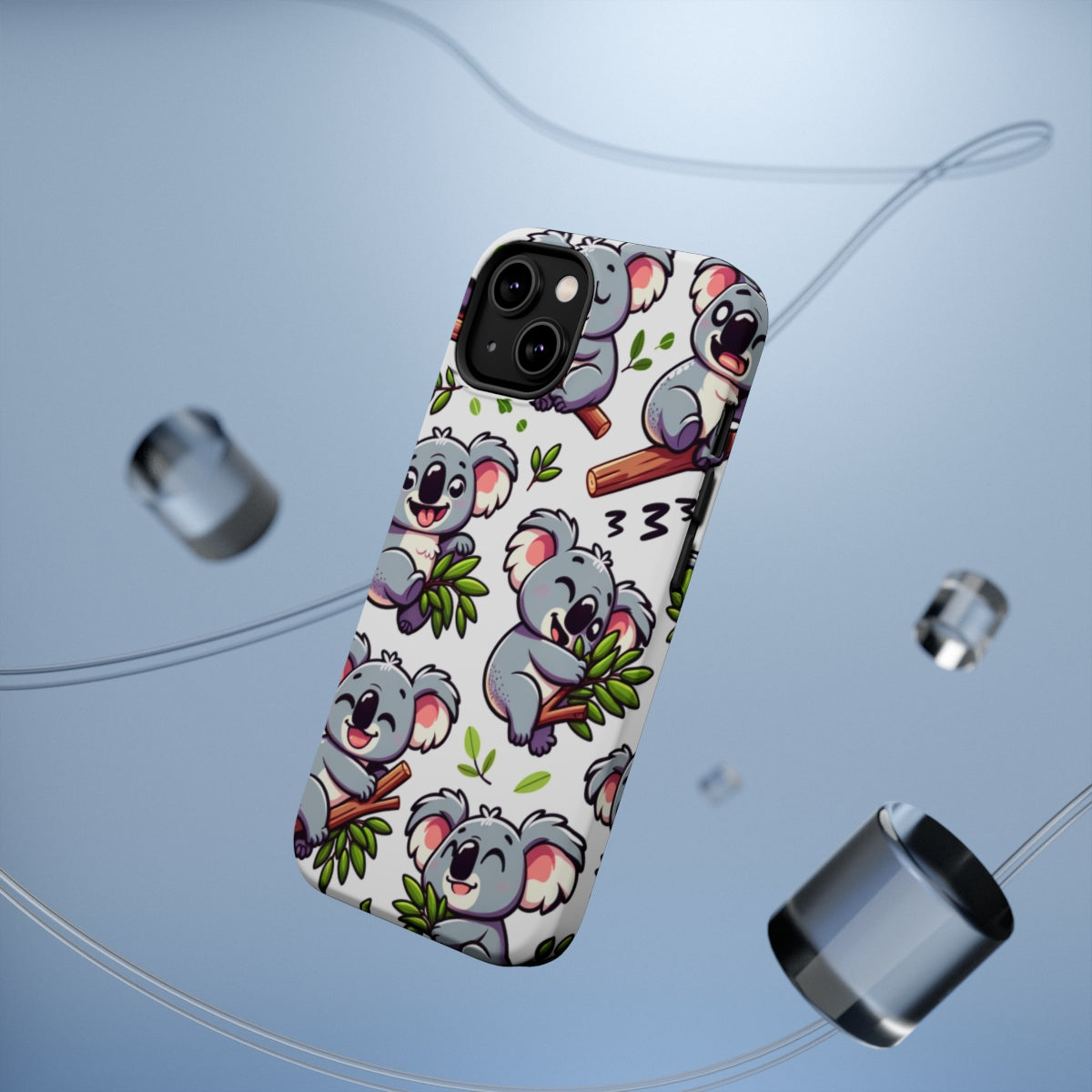 DistinctInk Tough Case for Apple iPhone, Compatible with MagSafe Charging - "Joyful Koala Playtime: A Cartoon Pattern"