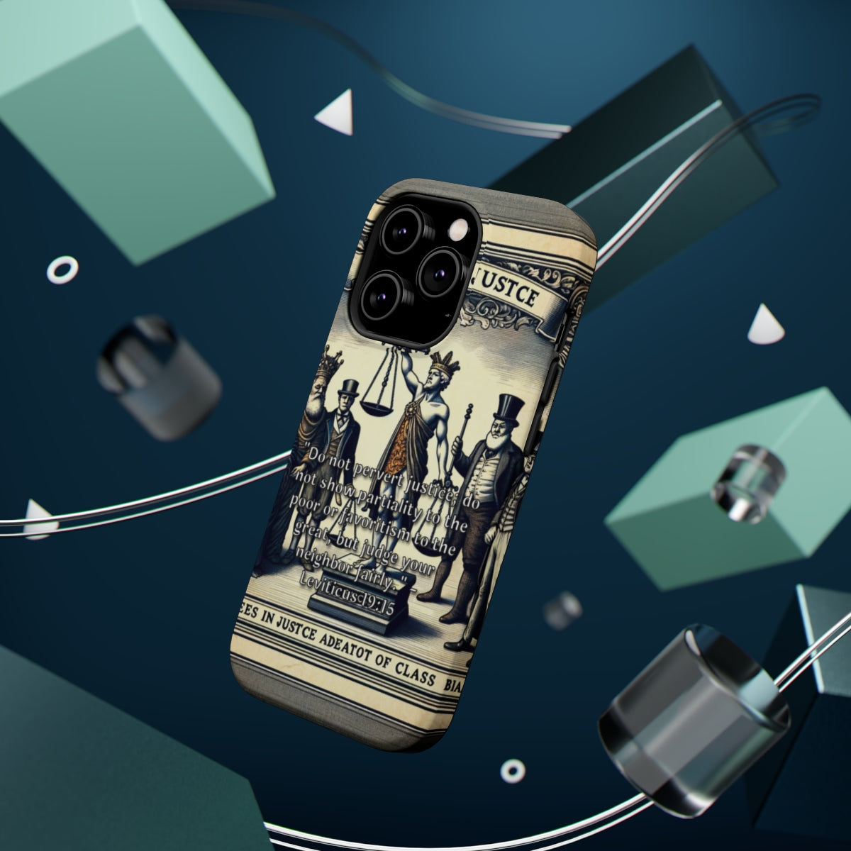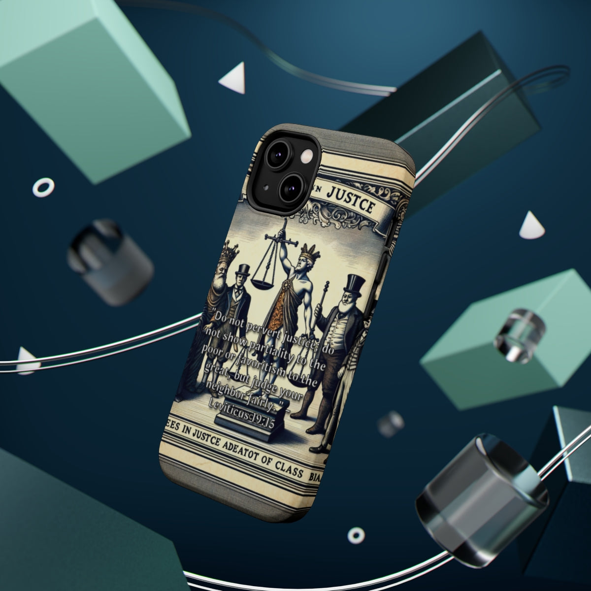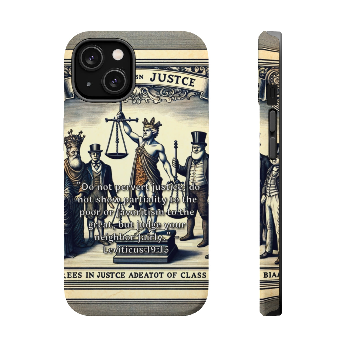 DistinctInk Tough Case for Apple iPhone, Compatible with MagSafe Charging - "Leviticus 19:15: Fairness in Judgment without Partiality or Favoritism"
