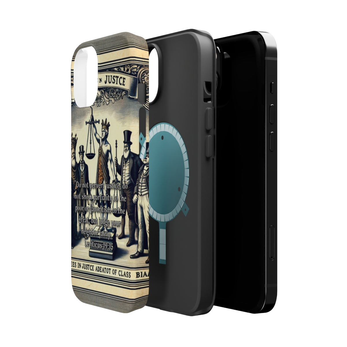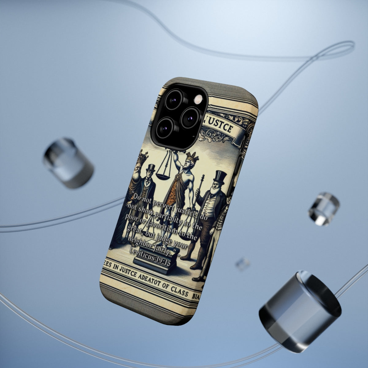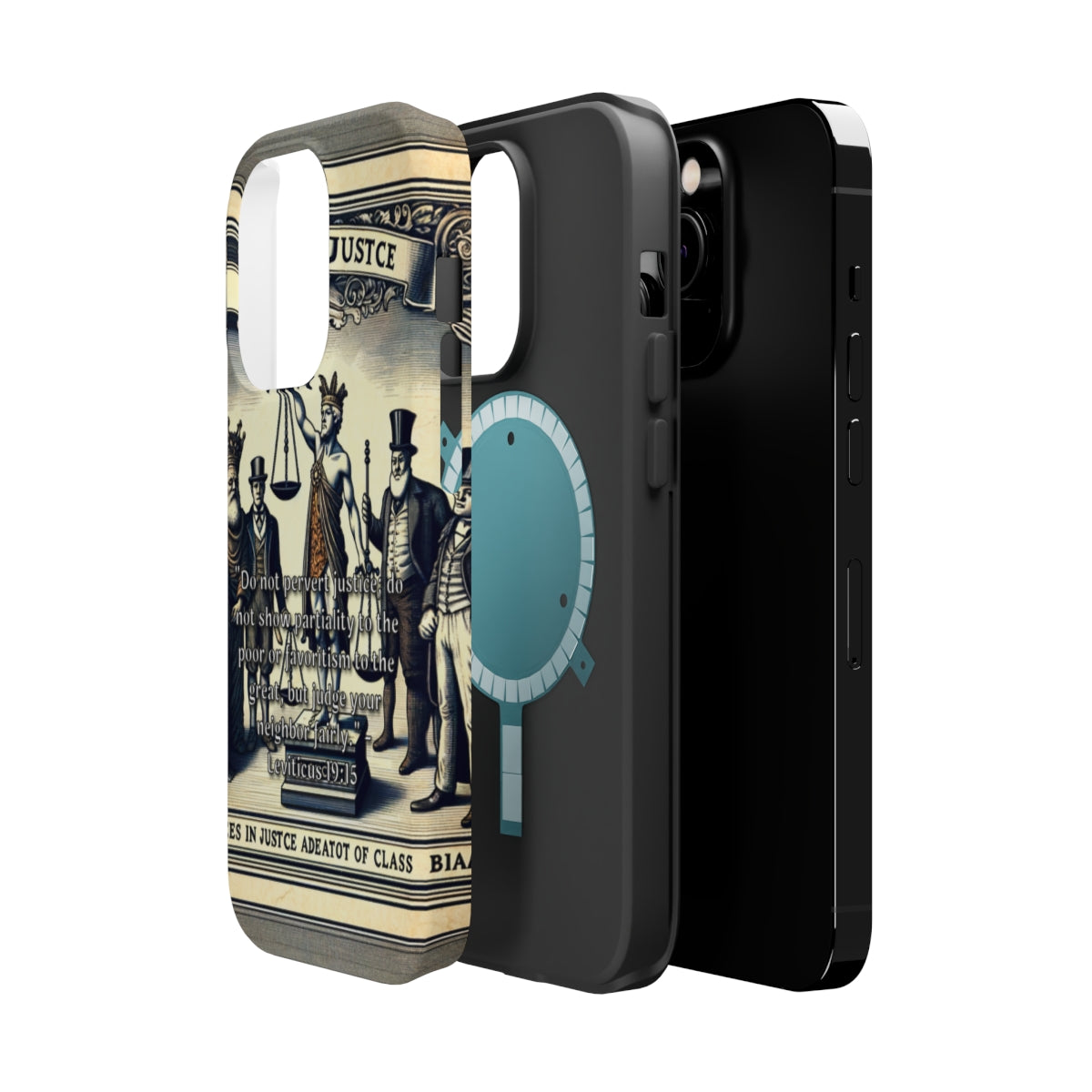 DistinctInk Tough Case for Apple iPhone, Compatible with MagSafe Charging - "Leviticus 19:15: Fairness in Judgment without Partiality or Favoritism"