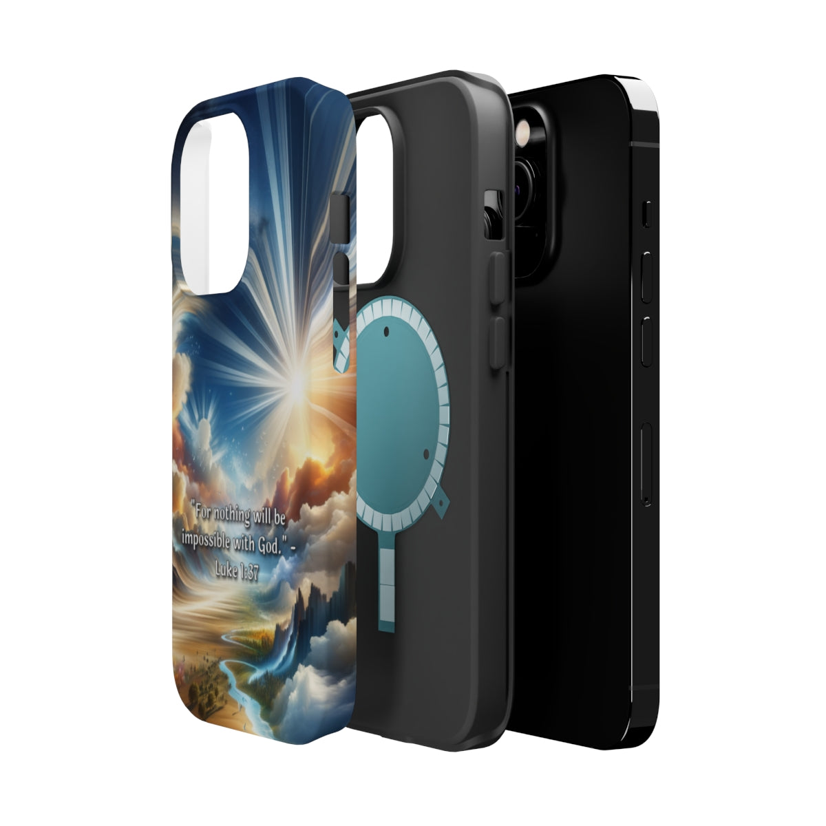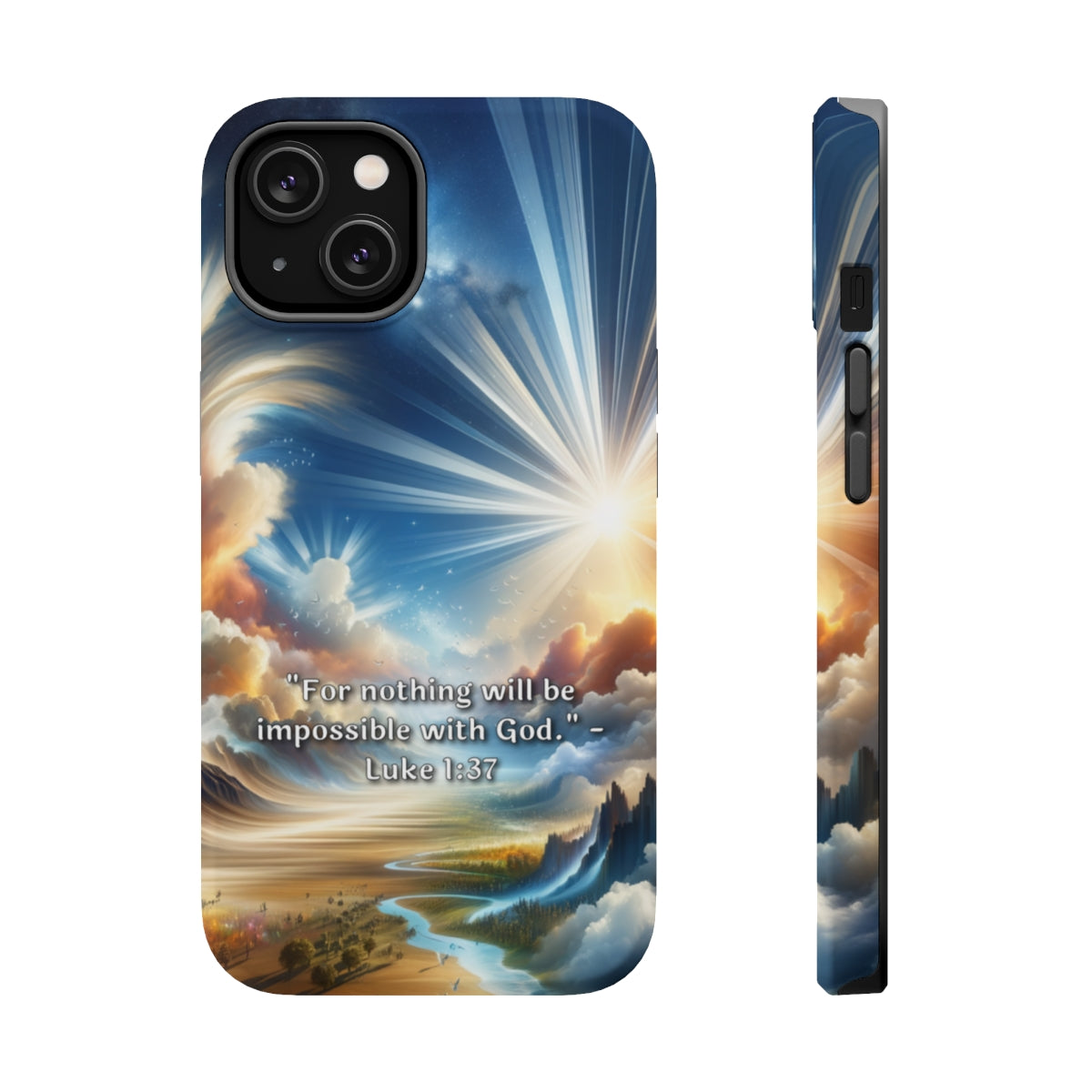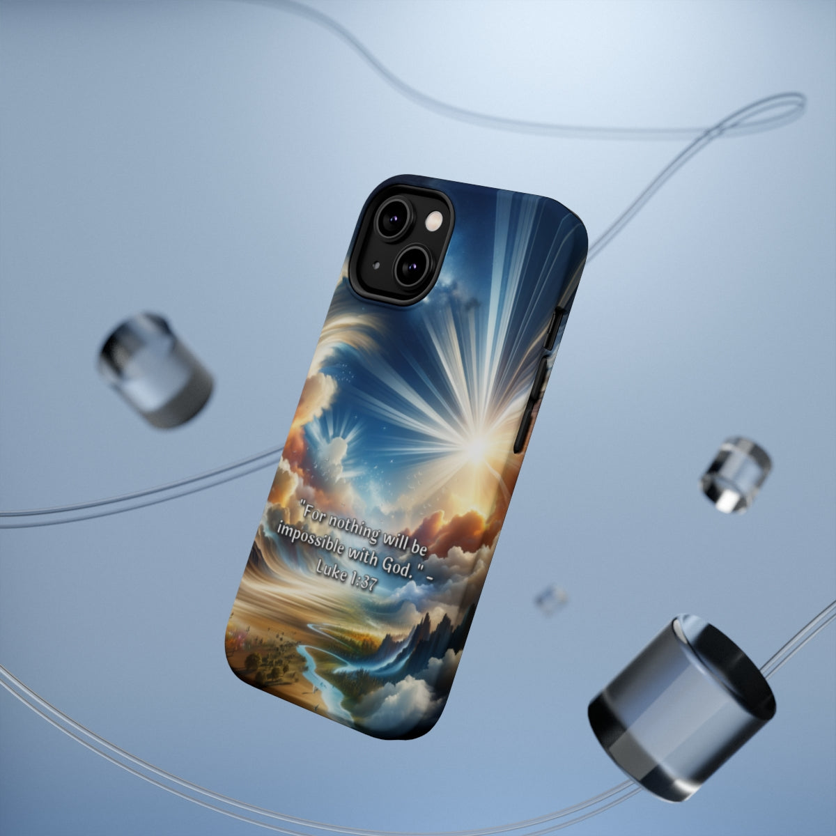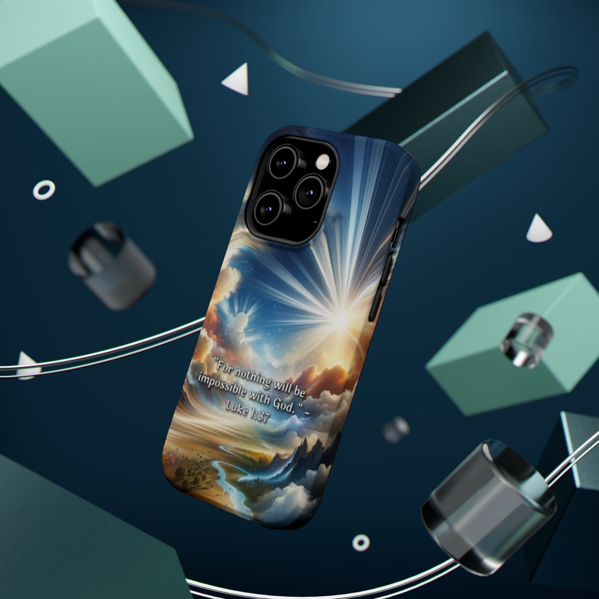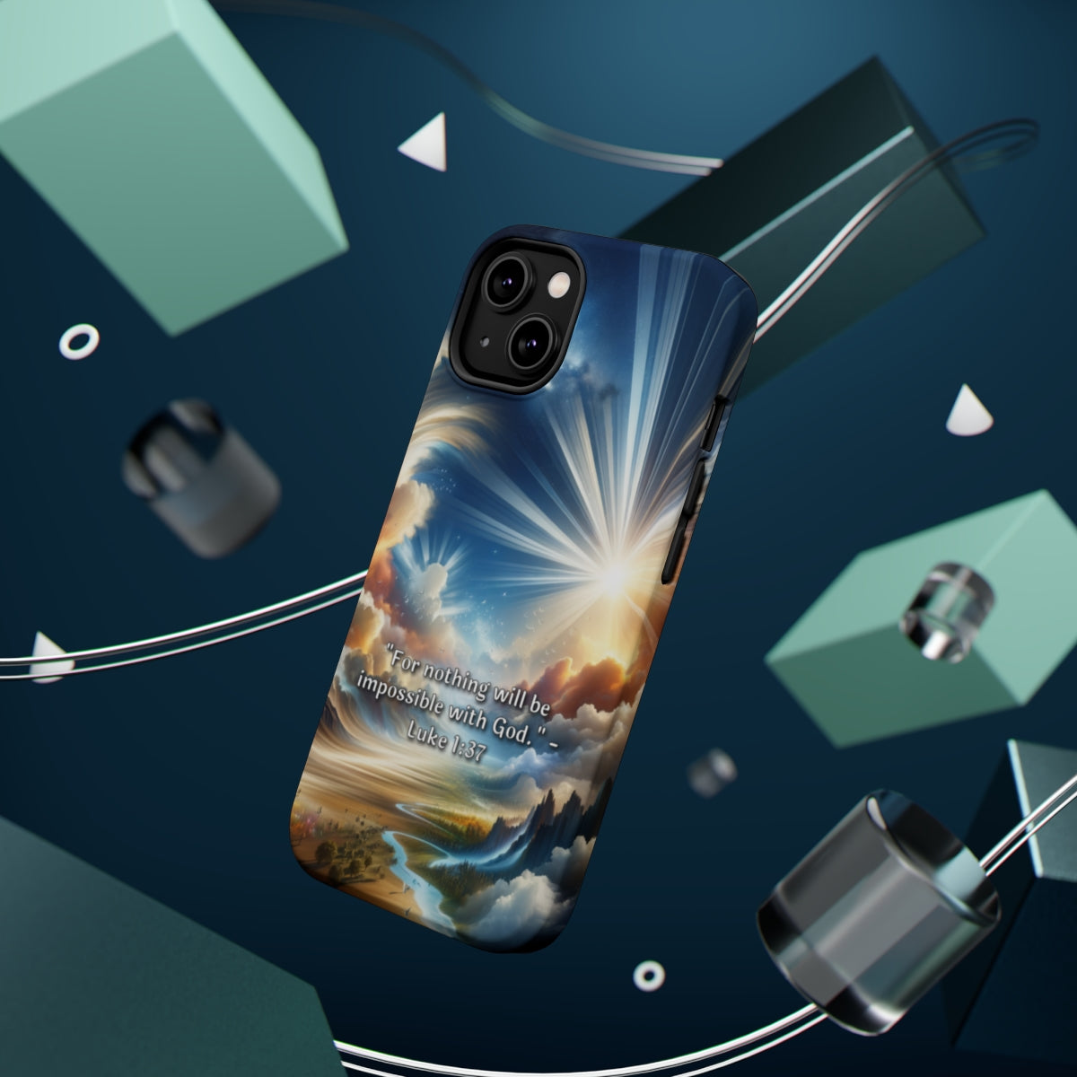 DistinctInk Tough Case for Apple iPhone, Compatible with MagSafe Charging - "Luke 1:37 Proclaims the Power of God's Infinite Possibilities"