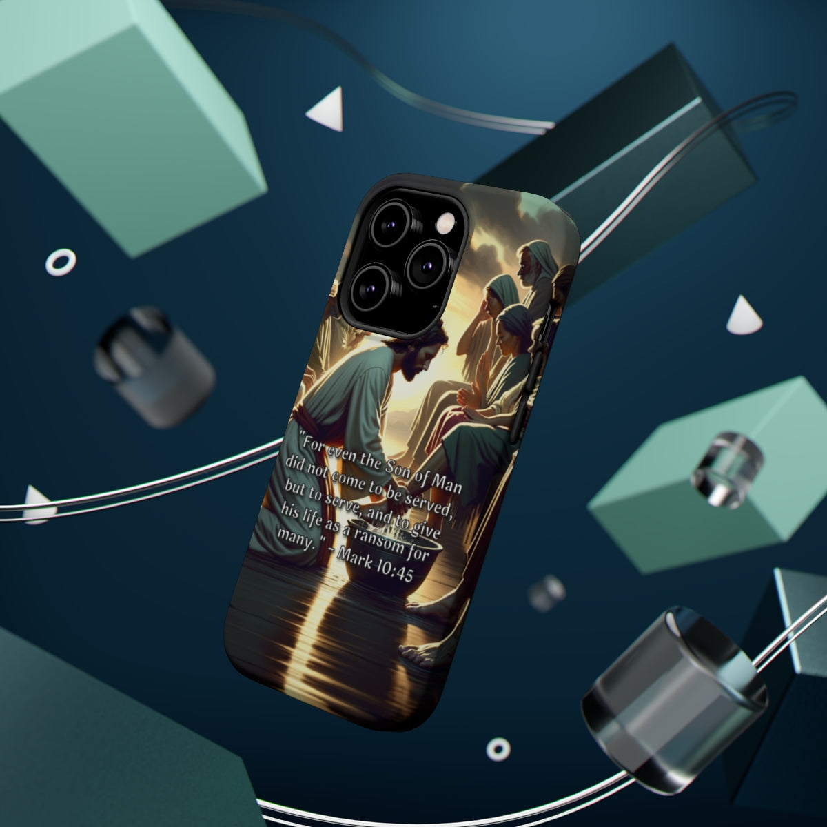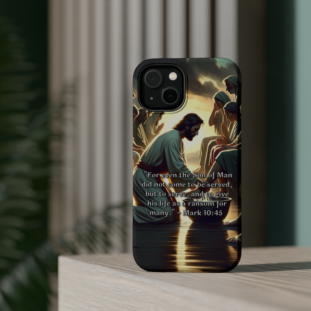DistinctInk Tough Case for Apple iPhone, Compatible with MagSafe Charging - Mark 10:45 - The Son of Man's Sacrificial Service