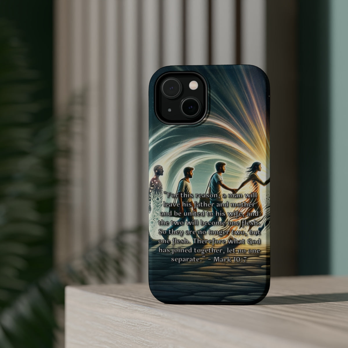 DistinctInk Tough Case for Apple iPhone, Compatible with MagSafe Charging - Mark 10:7: God's Unbreakable Union Between Husband and Wife