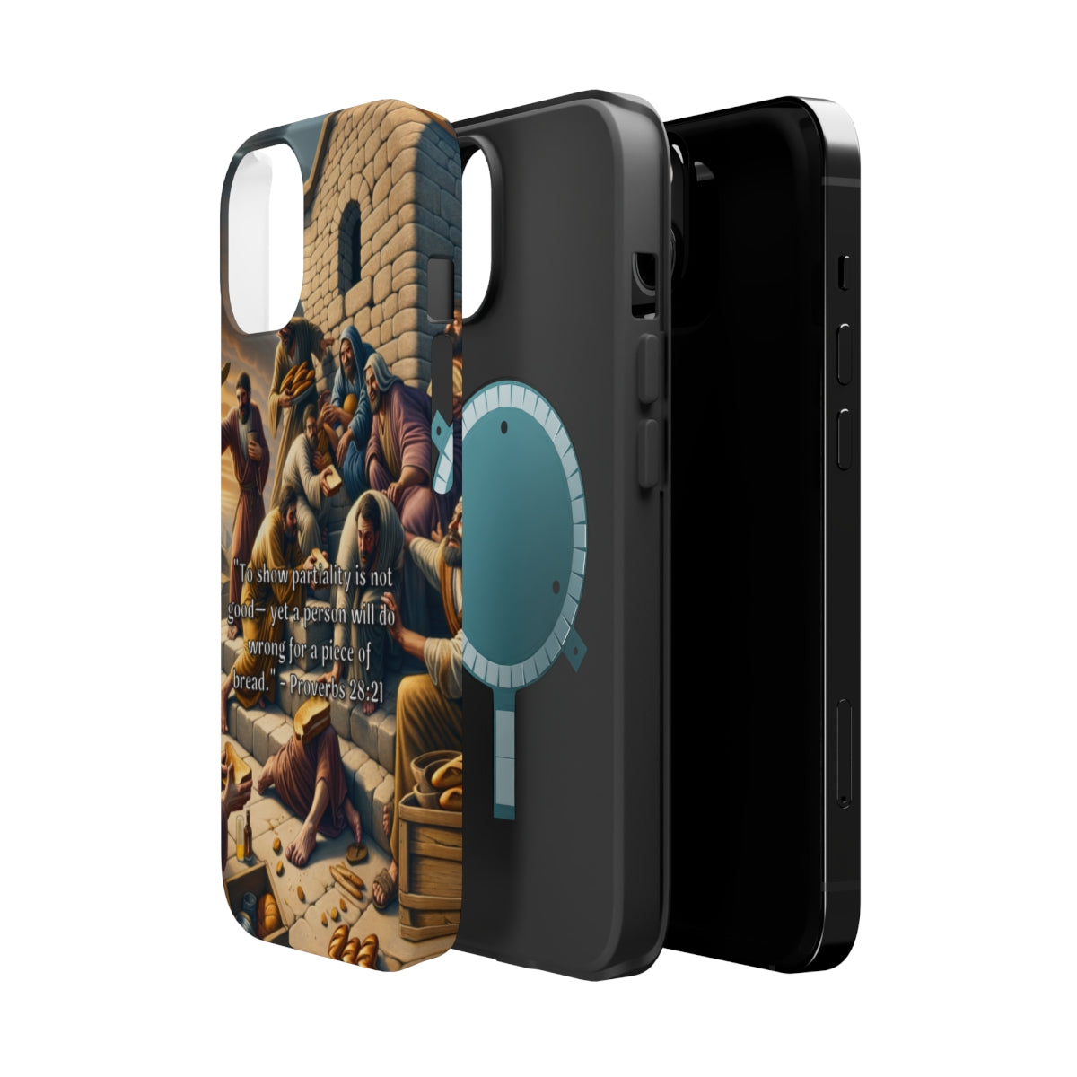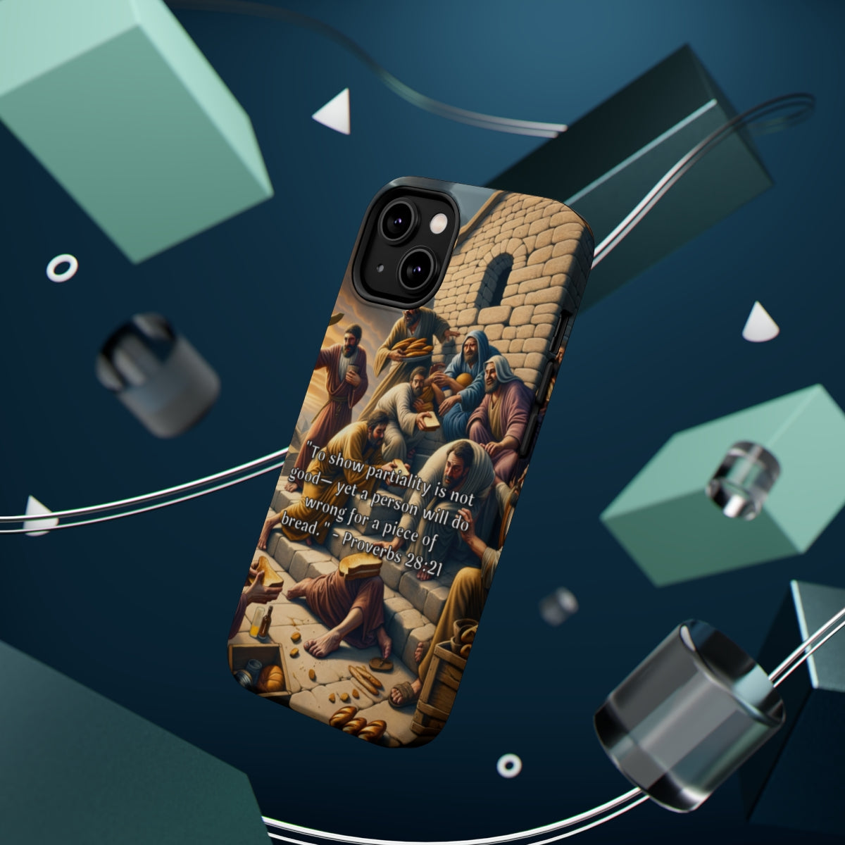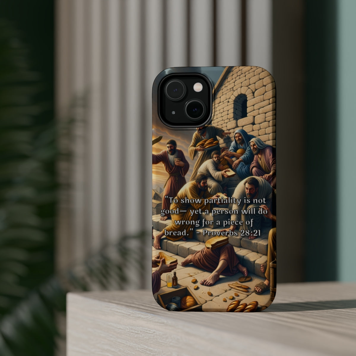 DistinctInk Tough Case for Apple iPhone, Compatible with MagSafe Charging - Partiality's Destructive Temptation: Proverbs 28:21 Reminder