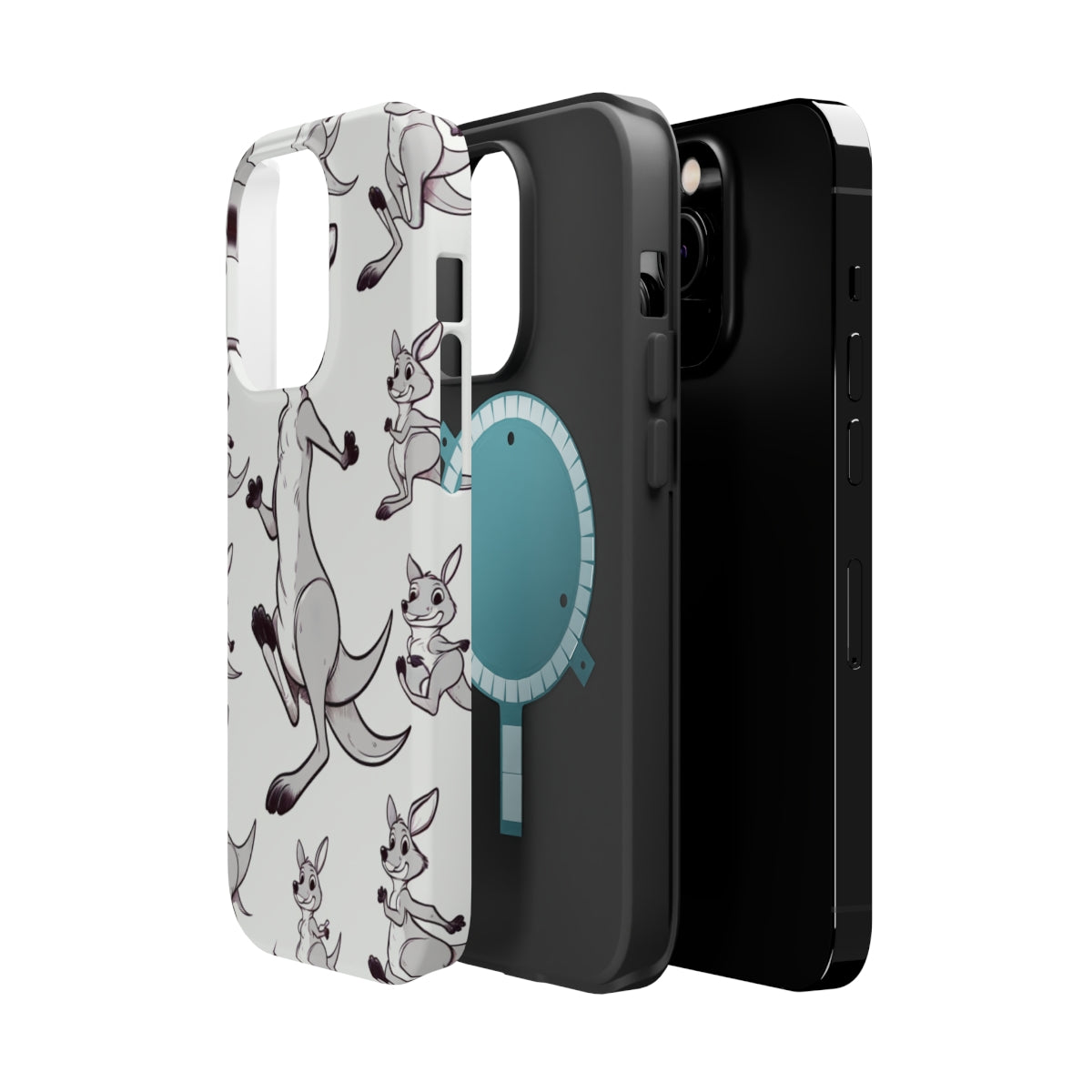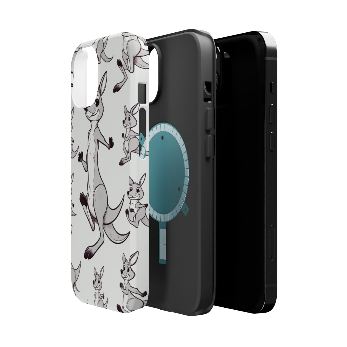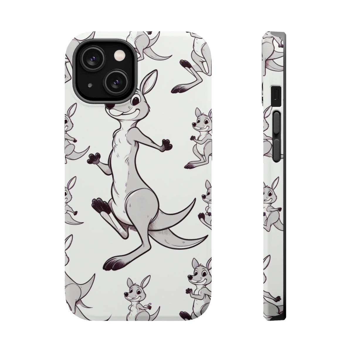 DistinctInk Tough Case for Apple iPhone, Compatible with MagSafe Charging - "Playful and Energetic Kangaroo Pattern"
