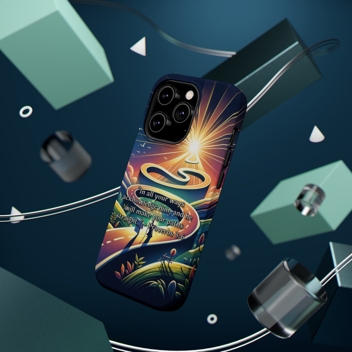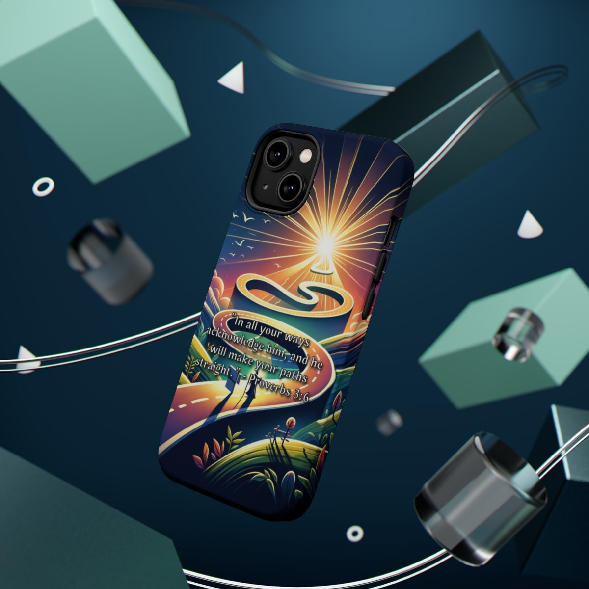 DistinctInk Tough Case for Apple iPhone, Compatible with MagSafe Charging - "Proverbs 3:6: Acknowledge Him and Walk Straight Paths"