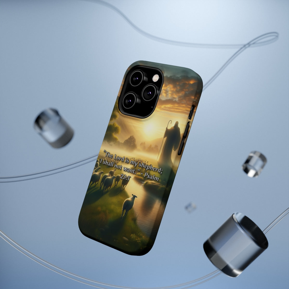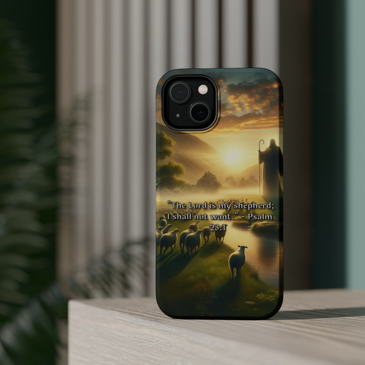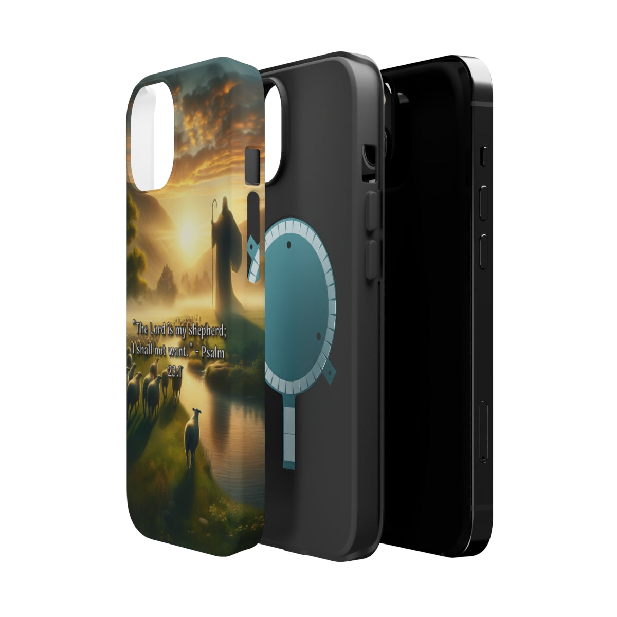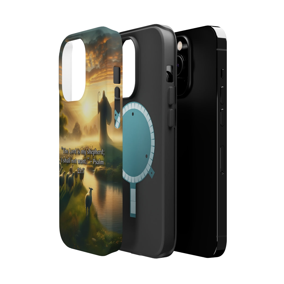 DistinctInk Tough Case for Apple iPhone, Compatible with MagSafe Charging - Psalm 23:1 - The Lord, My Shepherd, Empowers Me