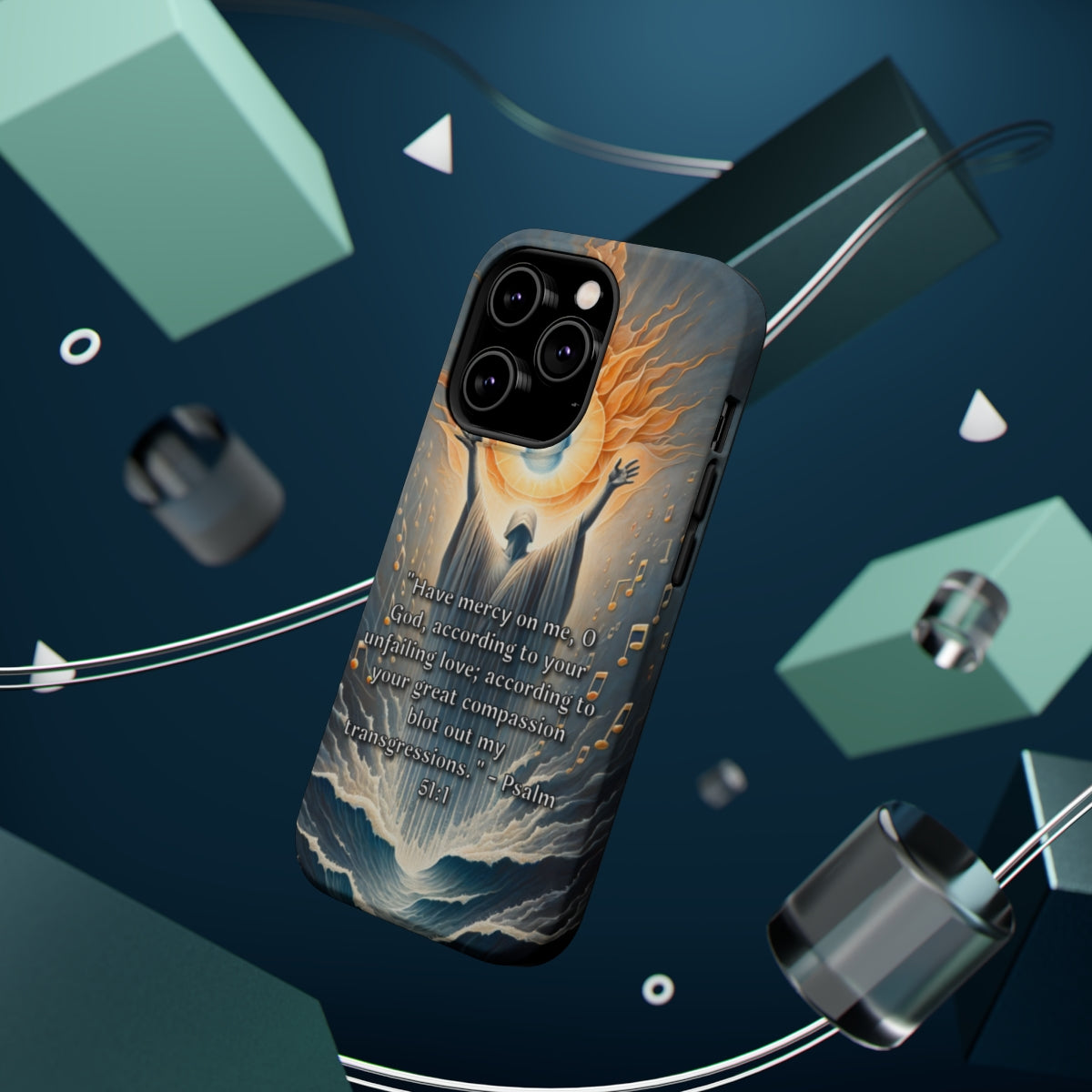 DistinctInk Tough Case for Apple iPhone, Compatible with MagSafe Charging - Psalm 51:1 - Divine Mercy: Erasing Transgressions with Love