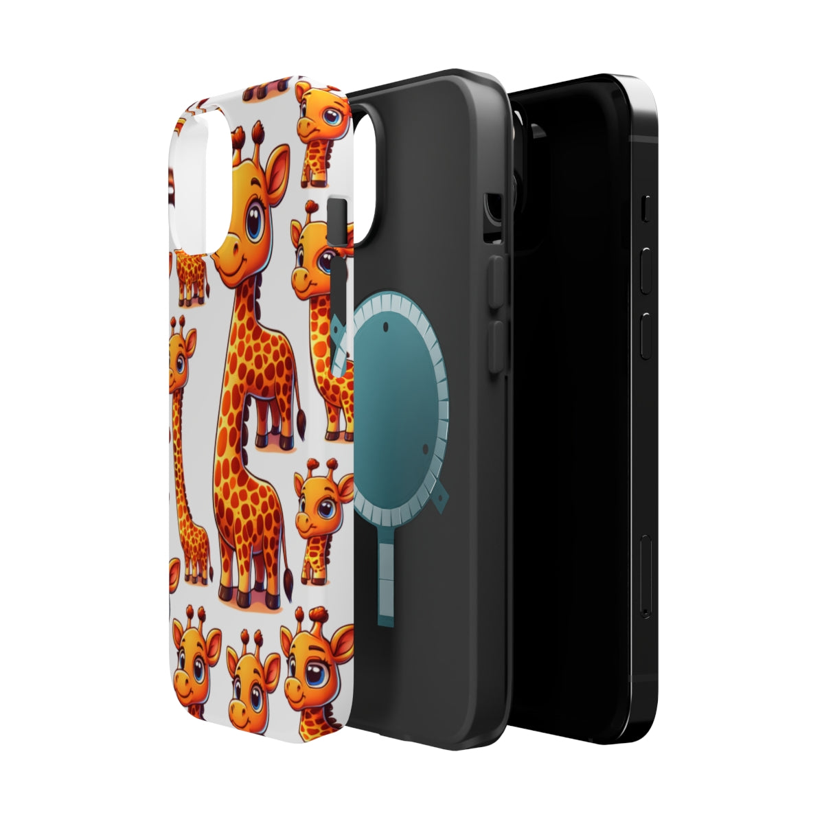DistinctInk Tough Case for Apple iPhone, Compatible with MagSafe Charging - "Radiant Cartoon Giraffe Pattern: Playful Poses"